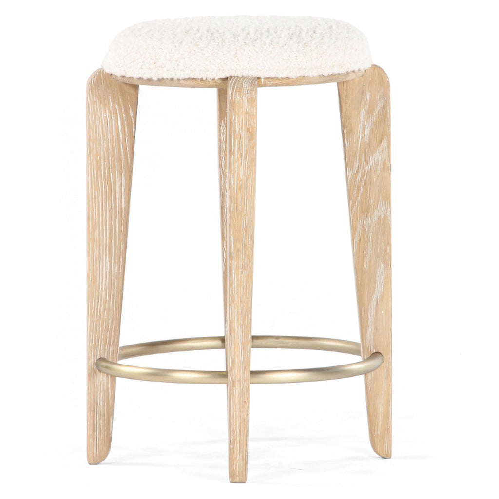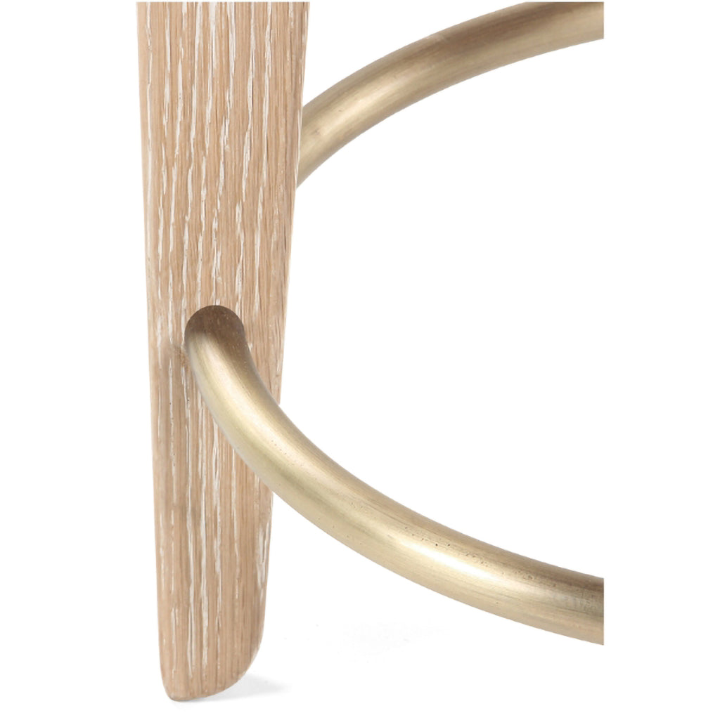 The Quattro Counter Stool is a modern reinterpretation of the classic café stool. Elegant, solid, FSC certified Oak legs support and upholstered seat cushion and a champagne brass plated steel footrest.