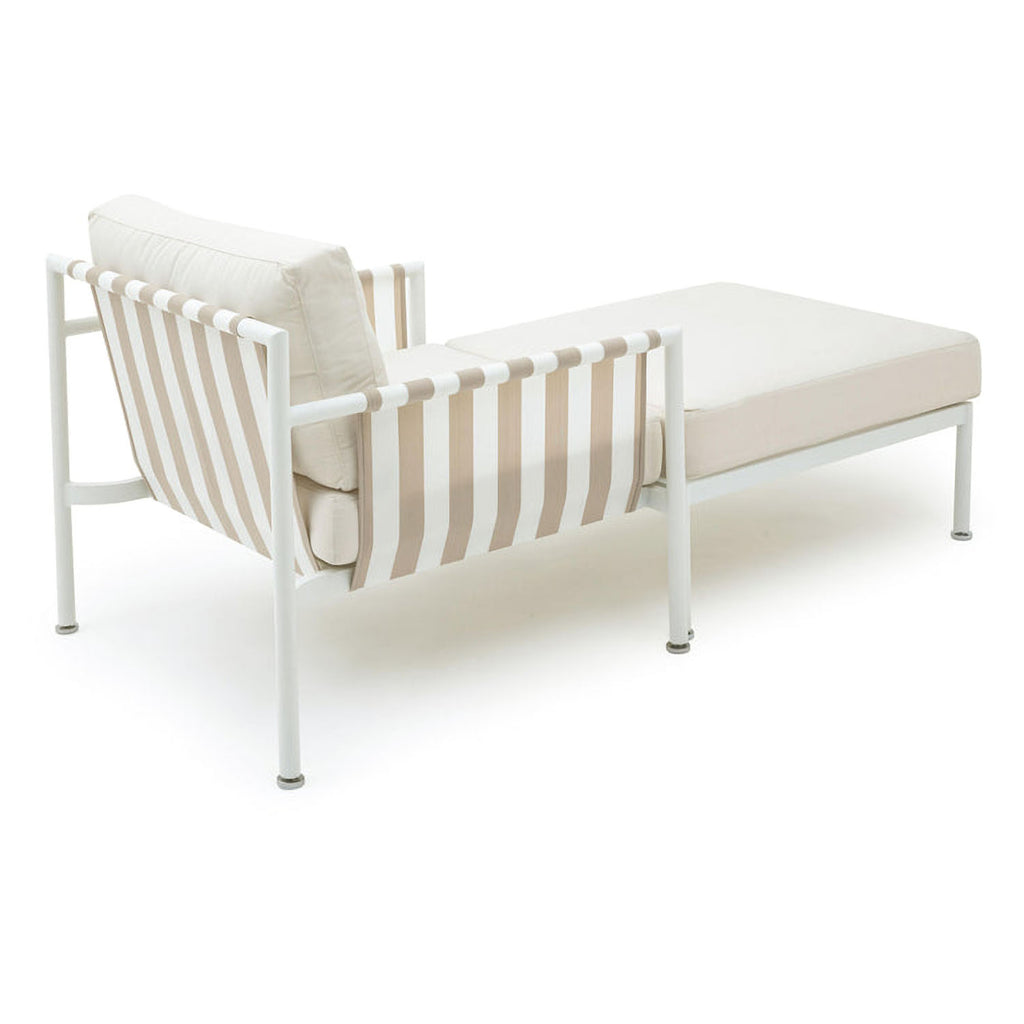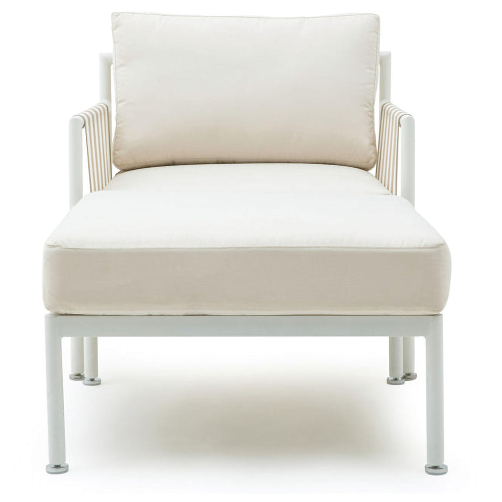 We're bringing the Riviera to you with the Dunes Cream Outdoor Collection, designed with an aluminum frame to prevent rust and ensure longevity, making it a durable addition to your backyard or patio. Crafted with outdoor-grade, UV-resistant polyester fabric and a powder-coated aluminum finish, this collection is built to withstand the elements while maintaining its chic appeal. The sectional features reversible cushions for easy stain management and high-density foam for indoor-level comfort, all while bringing the signature style of the French Riviera to your space with its stylish stripes. Plus, adjustable levelers offer the perfect solution for uneven outdoor surfaces, ensuring your sectional remains stable and wobble-free on any terrain.