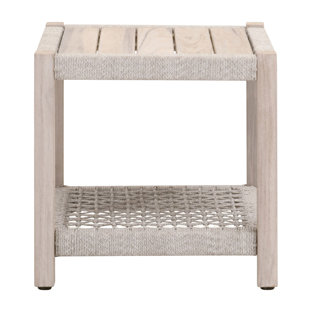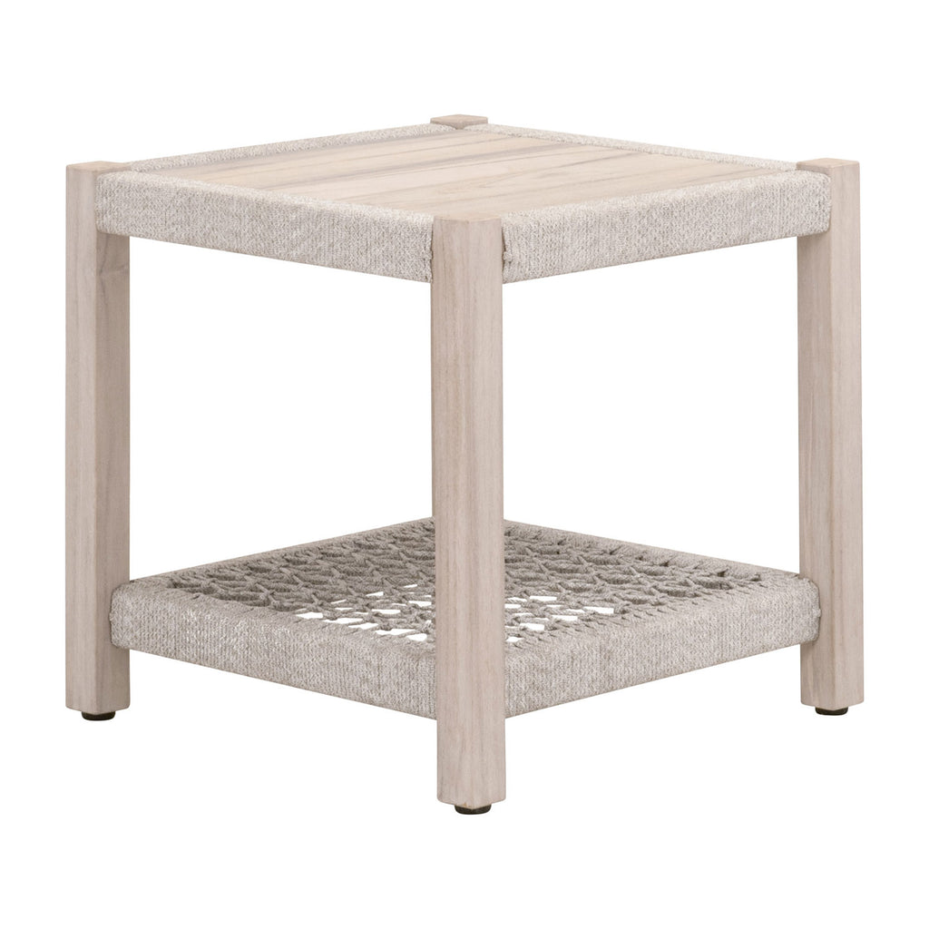 For stylish outdoor living, the Essentials for Living Wrap Outdoor end table is the perfect addition. Crafted for superior quality, this end table is designed to withstand the elements while offering a sophisticated touch to your outdoor space. Enjoy the luxuries of outdoor living with this attractive and durable accent piece. Woven Collection's "Gray Teak" is solid teak wood finished with a solution that expedites the aging process of teak to a natural silver tone. Over time, the natural weathering of Gray Teak will cause its appearance to change in color and texture, with possible marks and cracks.