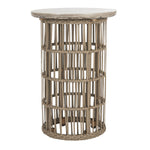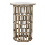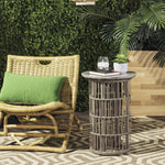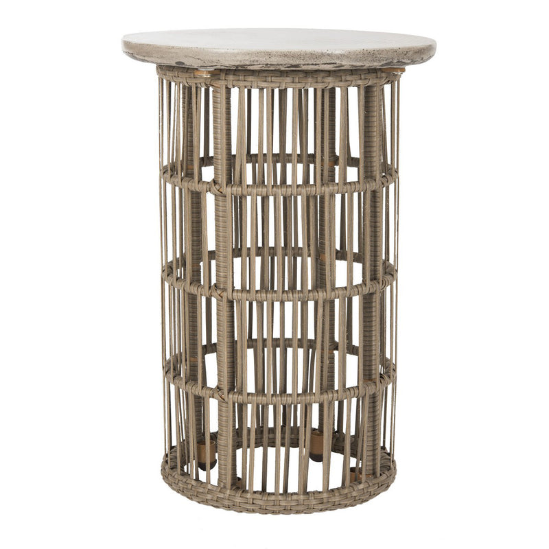 Designed for maximum versatility and value, this petite concrete indoor-outdoor side table packs a powerful punch. Its synthetic rattan cover boasts style while its invisible aluminum frame lends substance to any outdoor entertaining area or living room.
