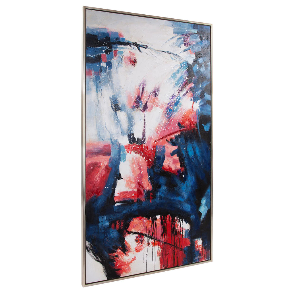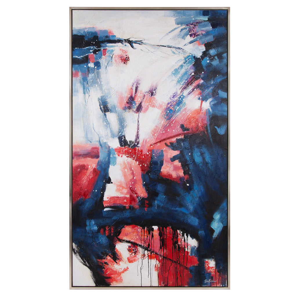 This rectangular masterpiece is a visual symphony of colors and textures, offering a captivating visual experience that celebrates the art of mixed media. With its textured surface, paint drips, and flecks of color that dance across the canvas, this artwork becomes a dynamic and expressive piece that captures the essence of contemporary art. Framed in silver, it gains an air of sophistication that elevates its overall aesthetic. Whether it graces your living room, dining area, or any space where you seek to infuse a sense of creativity and visual intrigue, our textured mixed-media artwork is a reflection of your appreciation for the beauty that emerges when different artistic elements merge together seamlessly.