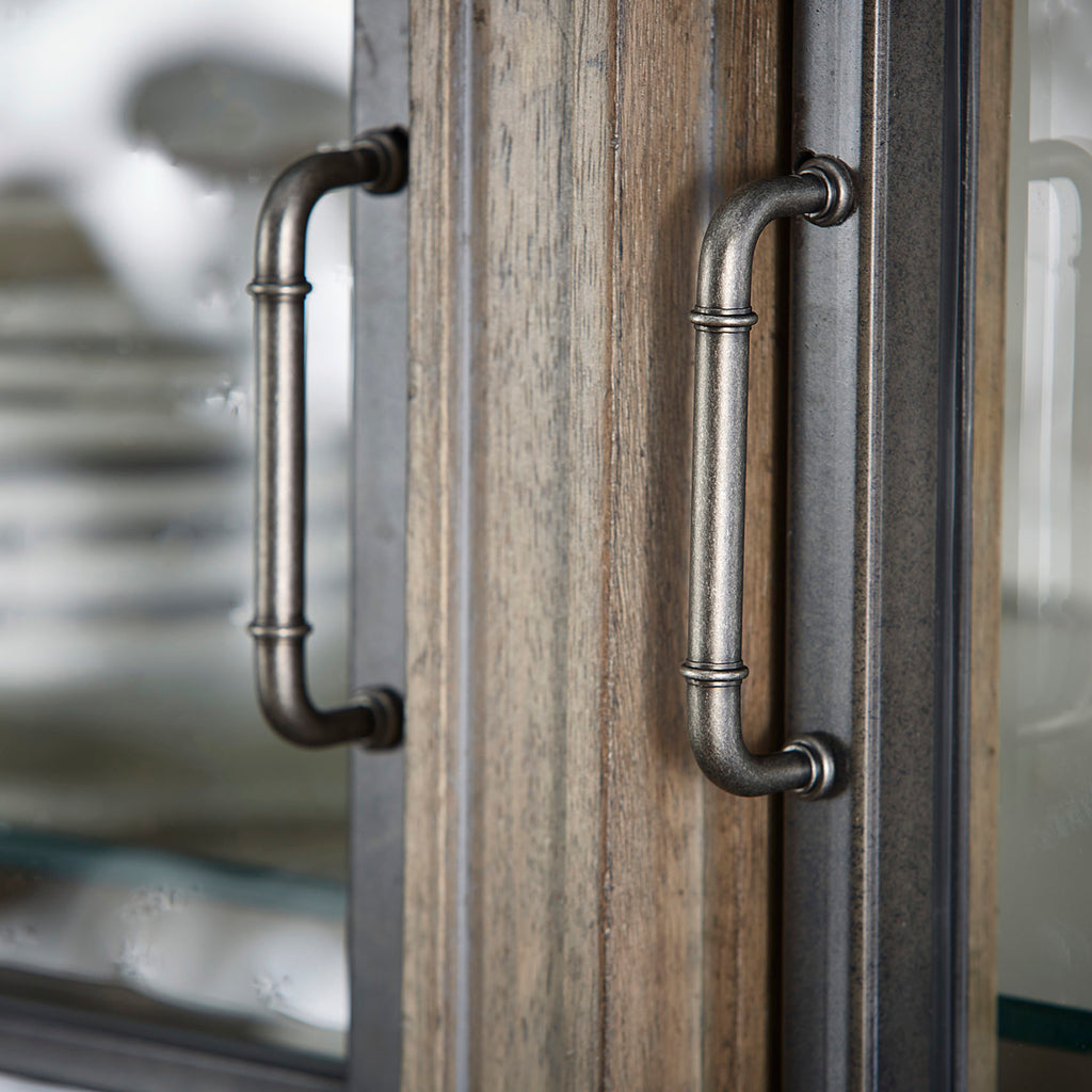 • Material: Parrawood Solids, Cathedral Elm Veneers, Glass, Metal