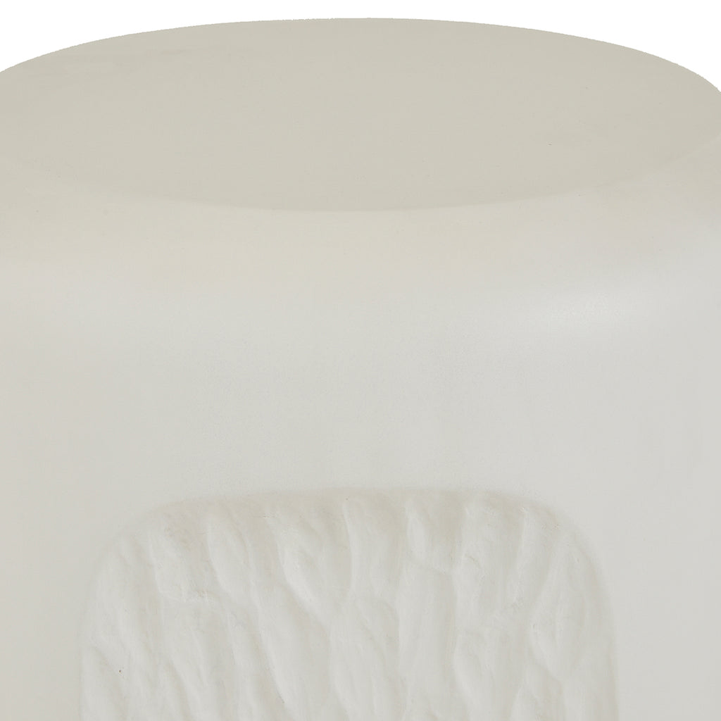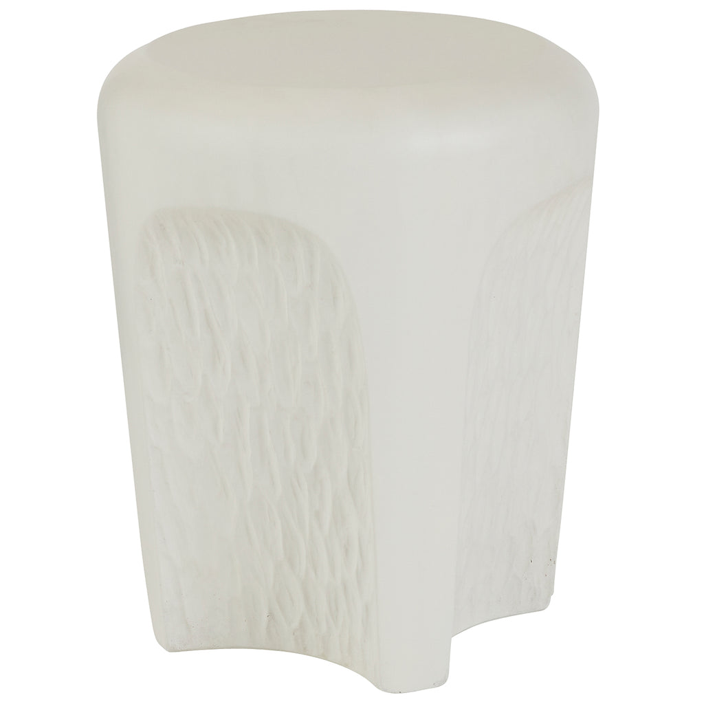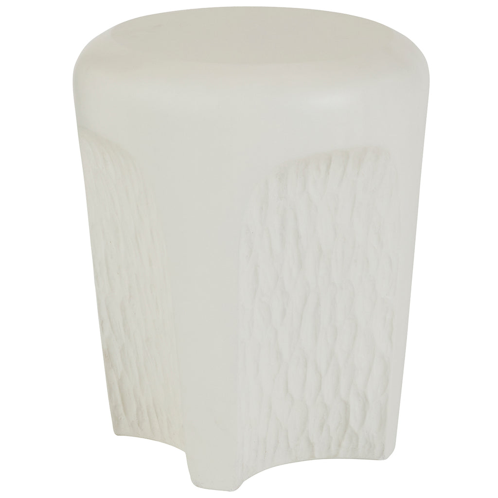 Contrast arches and a chiseled finish gives this accent table an eroded, wind-worn effect. Formed of ivory concrete composite, the low-lying silhouette makes it ideal as a drinks table in a seating group.