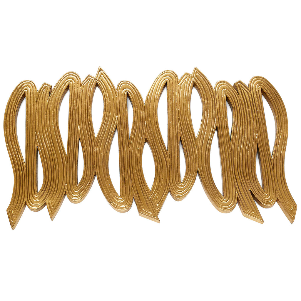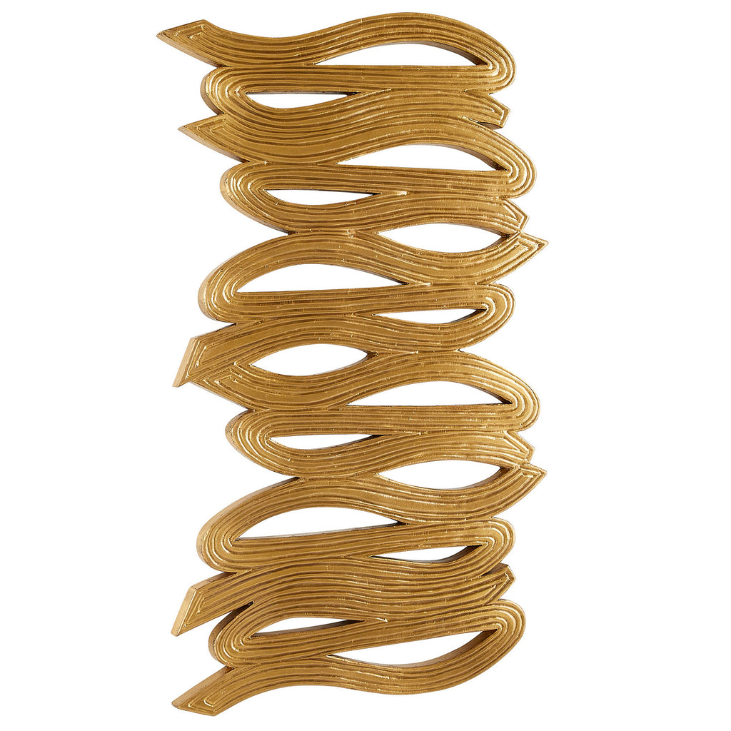 The free-flowing loops and curves of an artist’s brushstroke inform the Arteriors Effie plaque. Cast in antique brass with multiple cutouts, the repeating patterns and rippling texture add a dimensional look to any wall. Can be hung both horizontally and vertically or displayed in multiples for extra impact. A sawtooth cleat attachment assures secure hanging. Finish will vary.
