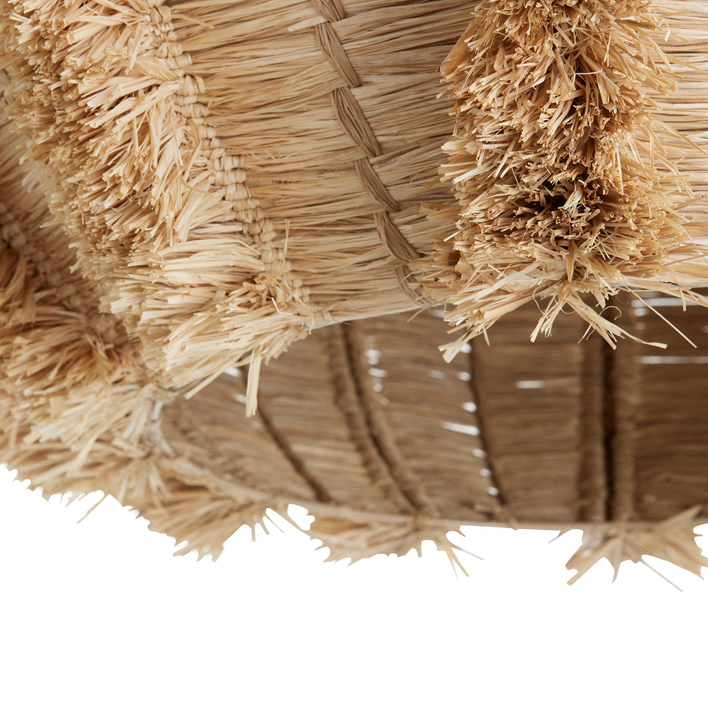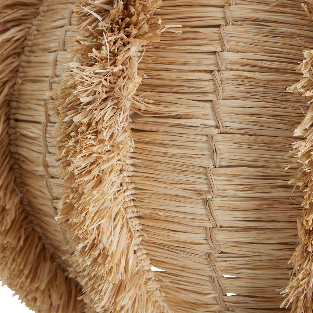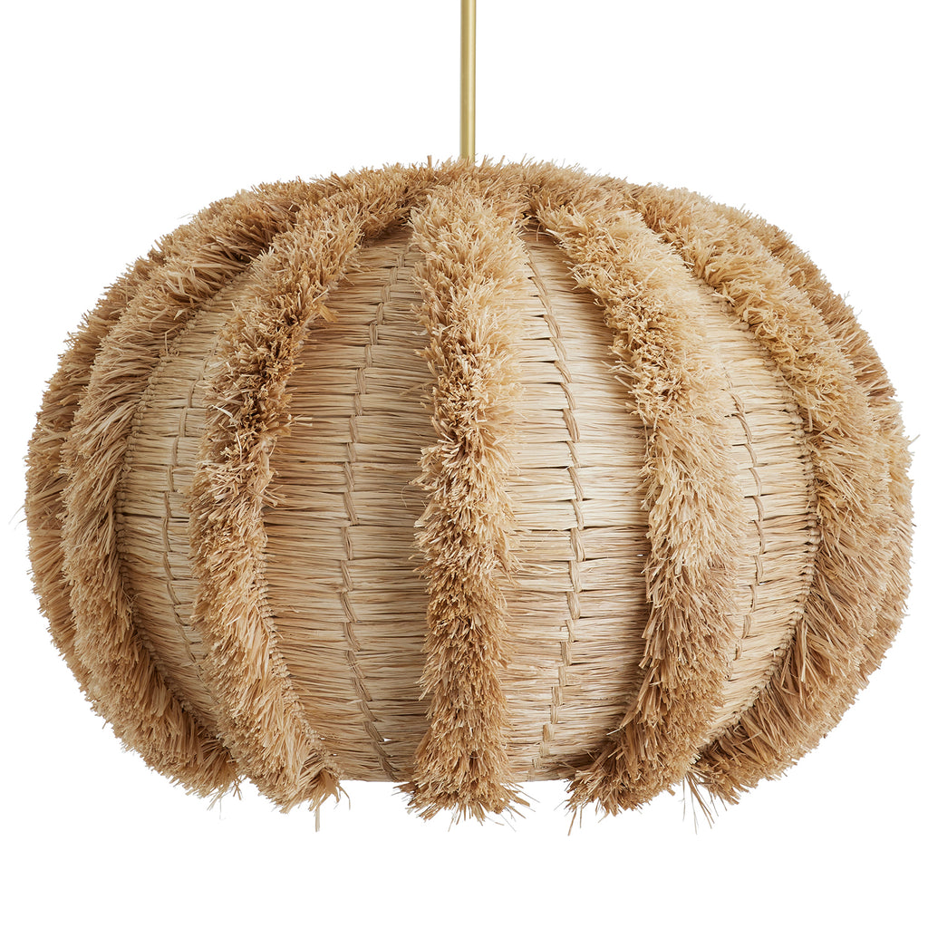 Arteriors Home lighting embodies the perfect balance of form and function, creating an ambiance that is both captivating and inviting. From sleek and minimalist lighting to more ornate and intricate fixtures, the Arteriors Home pendants offer something for every taste and style. The Arteriors Johanna presents a bold and playful design while remaining strikingly stylish. Natural raffia is woven into a traditional globe-shaped silhouette. Its closed weave construction is intersected by bold fringe accents, suspended by an antique brass iron pipe. When illuminated, this pendant gives off an earthy warmth.