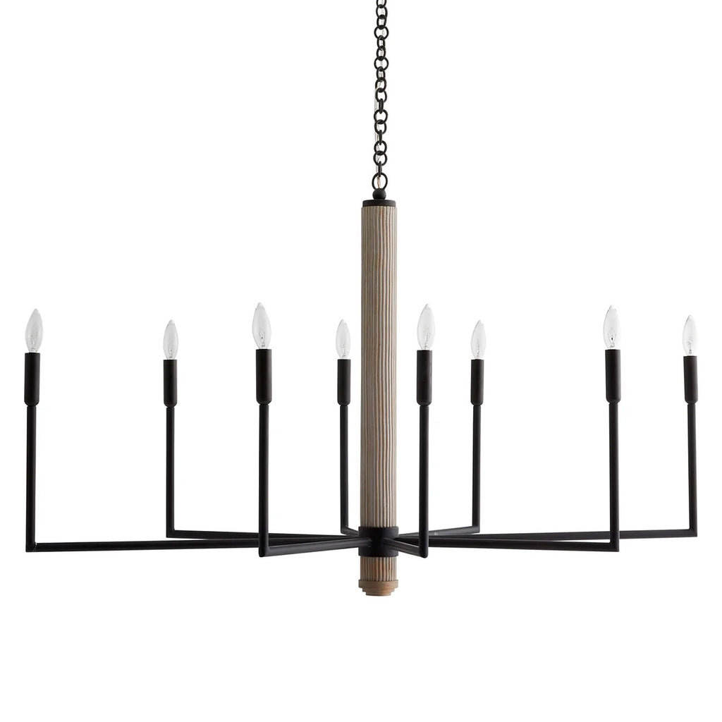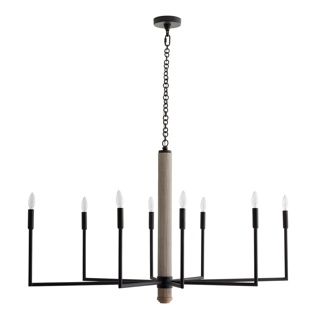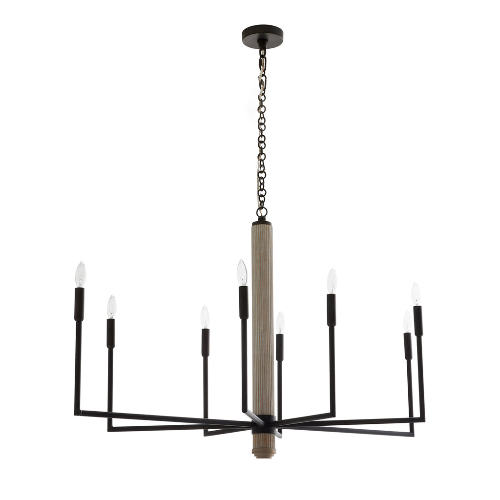 Arteriors Home lighting embodies the perfect balance of form and function, creating an ambiance that is both captivating and inviting. With an emphasis on superior craftsmanship, Arteriors ensures that their chandeliers not only illuminate the room but also make a statement. The Arteriors Orlando finds balance in a traditional shape and industrial materials. The elongated, pseudo linear candelabra silhouette is crafted from blackened iron and is introduced by a natural driftwood column. Fitted with eight lights for incredible brilliance. Finish may vary. Damp rated, limited covered outdoor areas may affect finish.