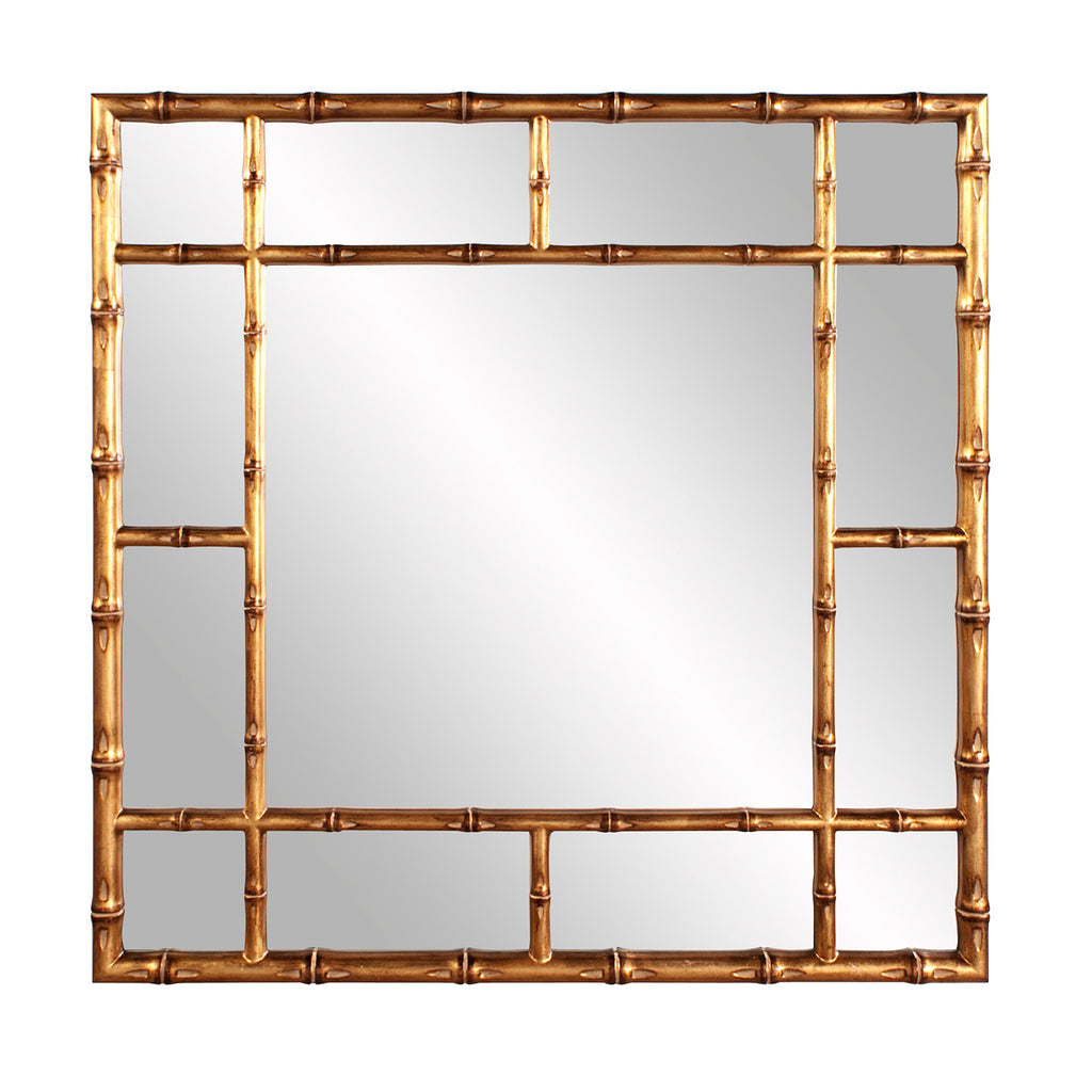 The Bamboo Mirror features a square frame fashioned to look like bamboo rods. It is then finished in our country gold. Its sleek style makes this mirror a favorite for bringing some flair to your decor. This simple yet stunning piece would be a great addition to any room. Alone or in multiples, it is a perfect focal point for an entryway, bathroom, bedroom or any room in your home. D-rings are affixed to the back of the mirror so it is ready to hang right out of the box in either a square or diamond orientation! Also available in silver.