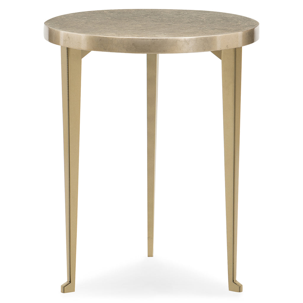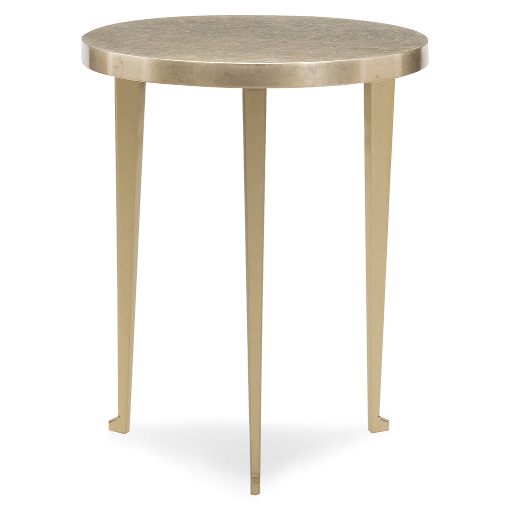 A treasure in itself, this petite table makes it easy to create an artful space. Glowing with the warmth and richness of pure honey, it features an intriguingly unique top created from layers of Golden Blonde Leaf applied in alternating patterns. Perfect next to a chair or anywhere you need a touch of brilliance, its eye-catching look is finished with three legs wearing a Golden Shimmer finish.