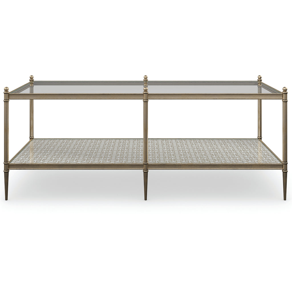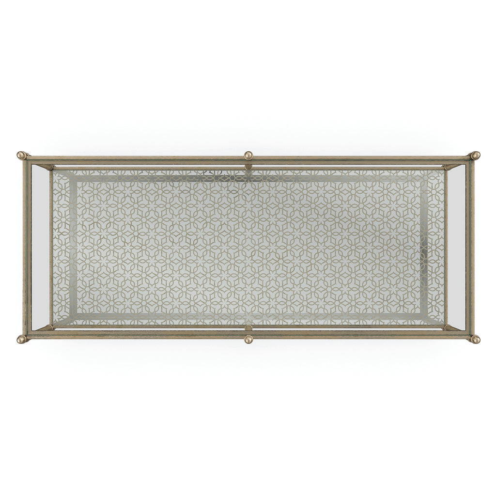 There’s only one way to describe this table: perfect. Crafted of glass, metal, and mirror, it comes by its glamorous character naturally. This distinctive table boasts a Neutral Metallic finish—a seamless blend of silver and gold—that accentuates its clean lines. A clear glass top creates another layer of visual appeal when you look through it and see the lower shelf and its back-painted mirror featuring an exquisite Silver Leaf pattern. Designed to blend seamlessly in any setting, this perfectly scaled table is the epitome of elegance.