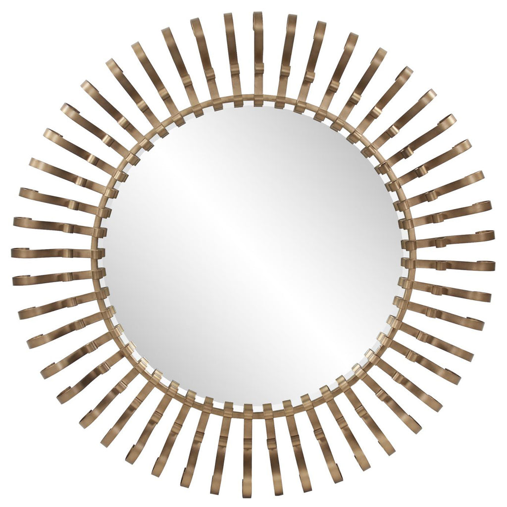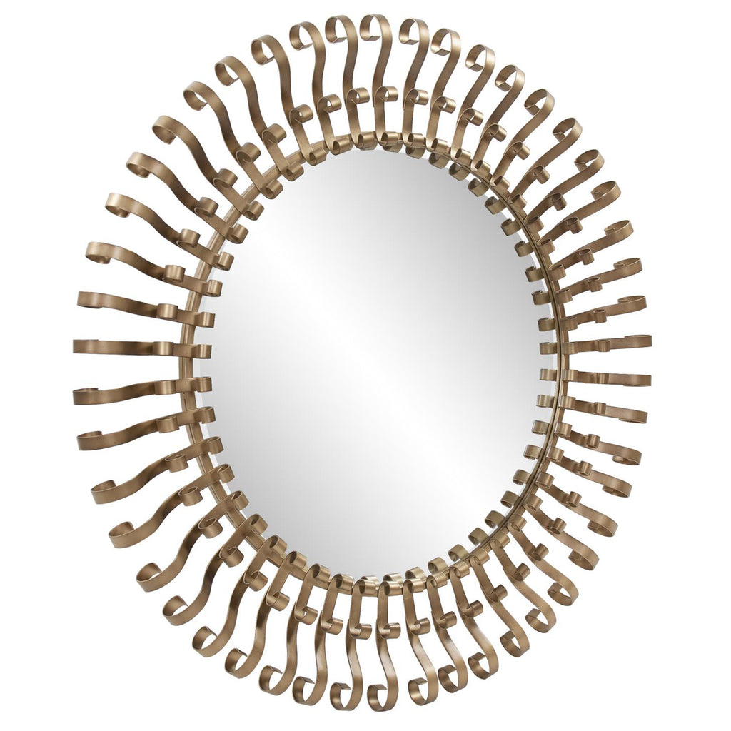 The Casimir mirror features a hand crafted iron frame. The beauty of this frame comes from the detailed workmanship that was used to create each of the curved pieces that surround this mirror. Finished is a deep golden tone, the Casimir is ready to take center stage in your home.
