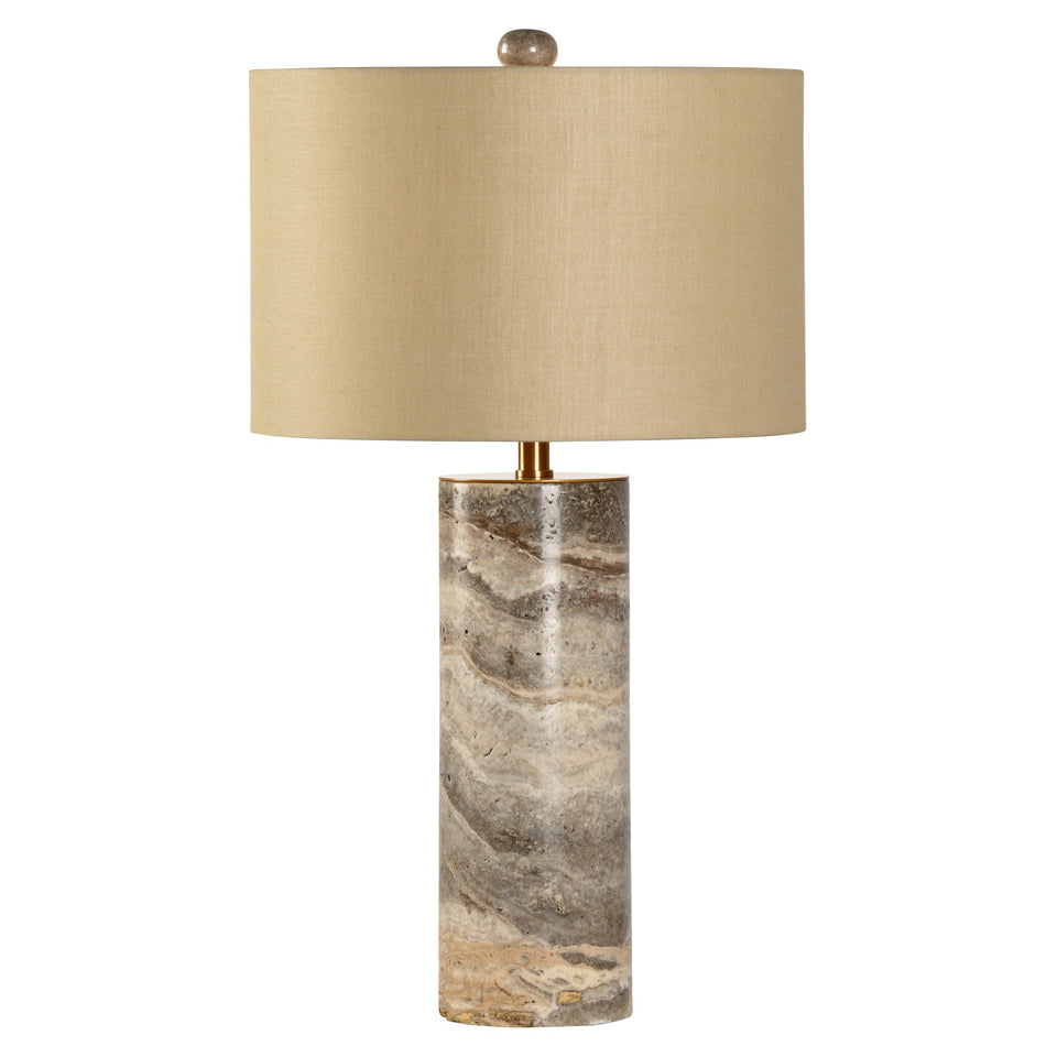 The Gray Marble Column table lamp from Chelsea House captivates in a variety of spaces. Embrace its inviting glow and unique texture in a bedroom or living room. Beautiful Gray Marble Column Lamp With Brass Finished Parts.