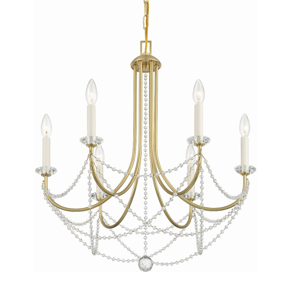 Crystorama is known for its standout lighting, which is exceptional in quality and design. From traditional all-crystal designs to transitional lighting collections, Crystorama offers styles that will match any décor and are always in fashion. The Delilah chandelier makes a grand statement to your interior. Its swooping metal frame gracefully hangs crisscrossed cascading crystal beads from each metal arm. This modern-style crystal chandelier adds a rich and formal look to a room, making it the ultimate final touch. Delilah collection features a versatile transitional design. A marriage of traditional and contemporary equate a classic and timeless design that focuses on simplicity and sophistication. The light source is placed directly behind the crystals to create a nice light refraction. Aged Brass metal finish is treated to look aged and have a rich hue. This shade adds a luxurious touch to any room and is perfect for modern and contemporary settings.