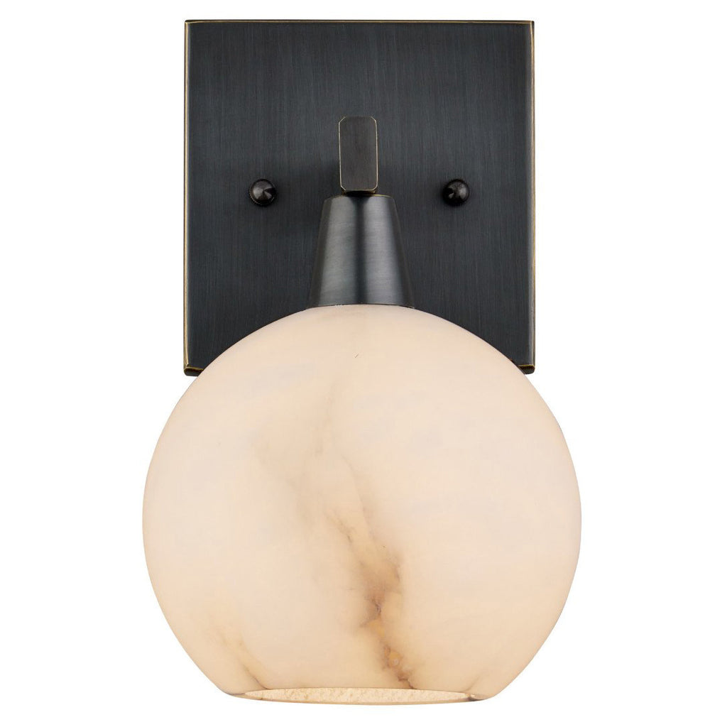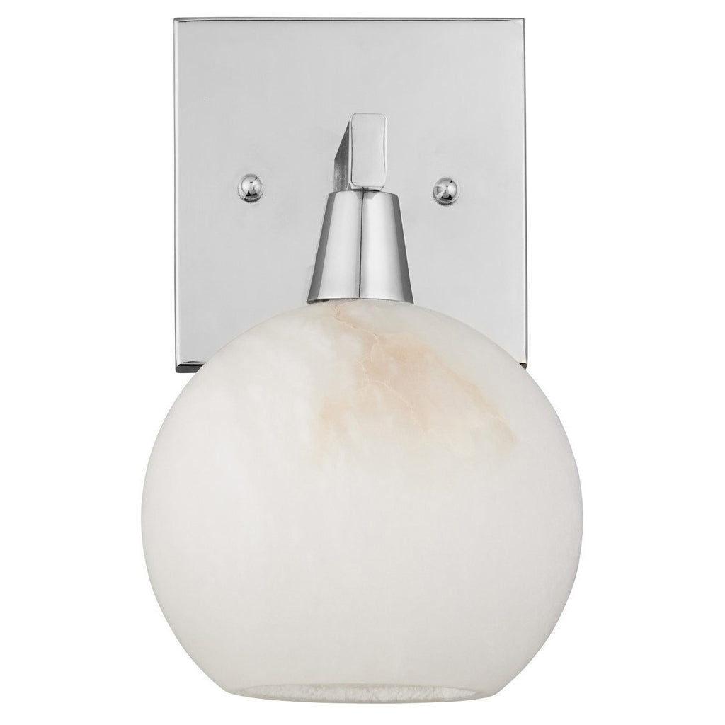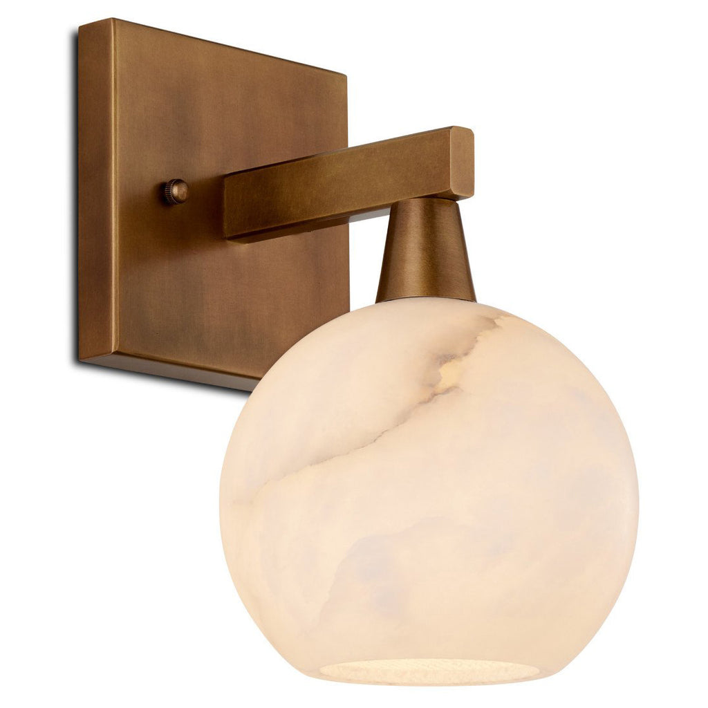 The Bombelles wall sconce was designed to spread abundant light over a bathroom counter, the fixture joining others in the Bath Collection. The globes will be luminous when they are lit, as they are made of natural alabaster, and the finish on the metal adds warmth to the design. Alabster is a natural material, so there will be slight variations in each of the fixtures.