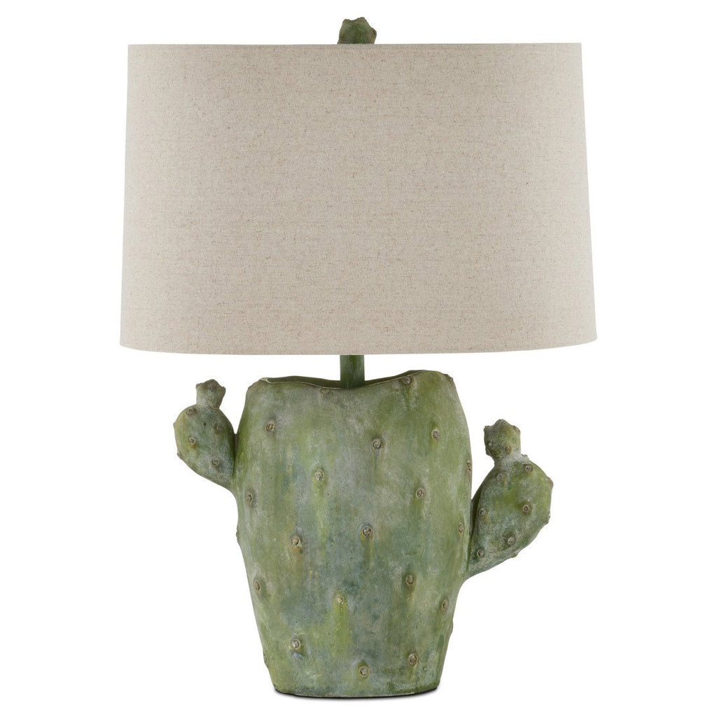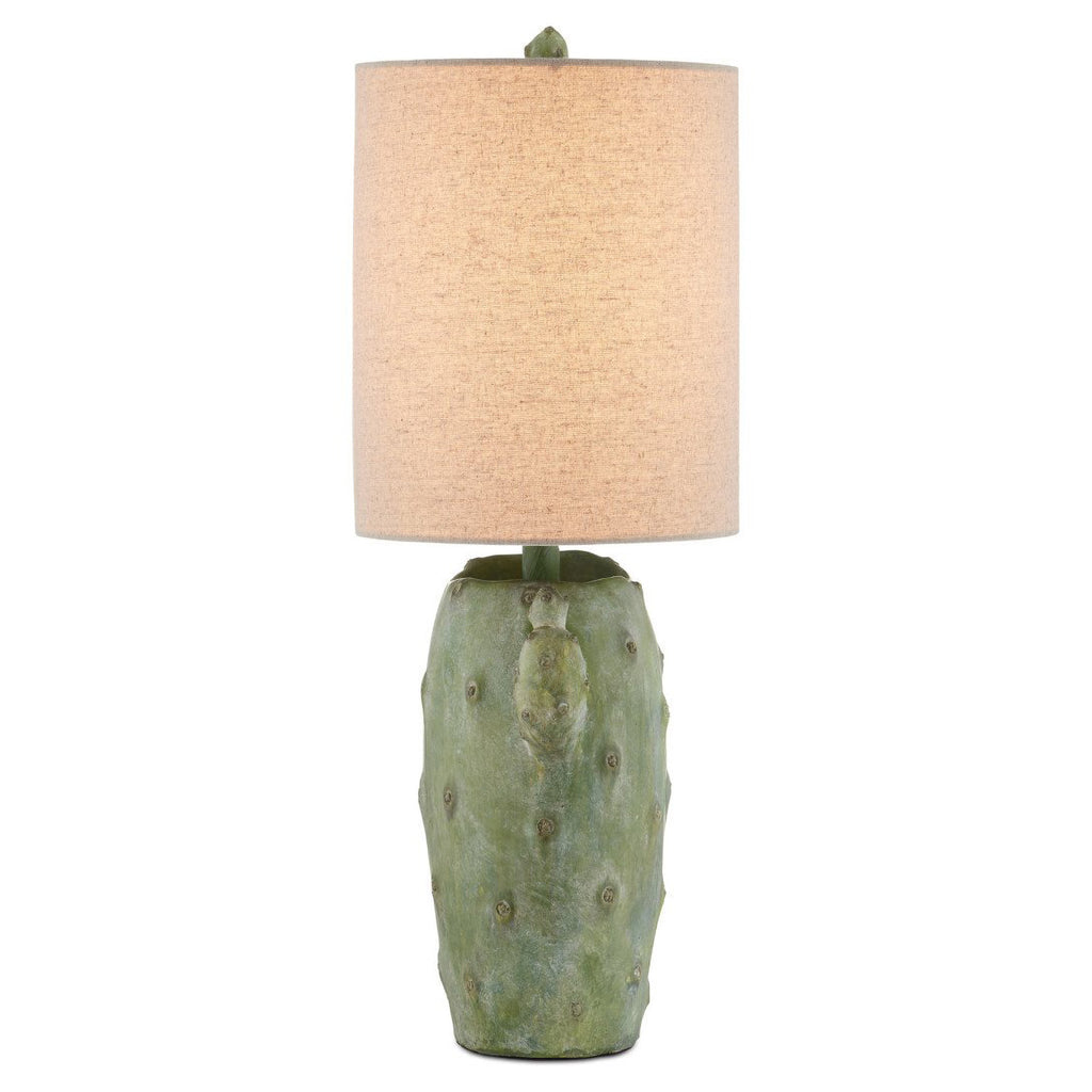 The Cactus Table Lamp has a slender oblong shape, making it great for spots where a lamp needs to sit closer to the wall. Made of made of composite to resemble concrete, it is slathered in varying shades of green for a verdigris ombré effect that looks aged. Because of this hand-applied treatment, the artisanal fixture will vary slightly from lamp to lamp.