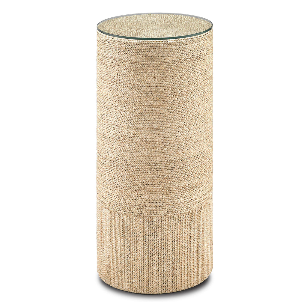 Wrapped in natural rope, the Currey & Company Macati Pedestal is made of wood and topped with a disc of glass. The artistry required to create such a cohesive flow of rope on a piece such as this takes the Currey & Company artisans a great deal of time to master. The rope pedestal has an implied base when the direction of the rope goes from horizontal to vertical.