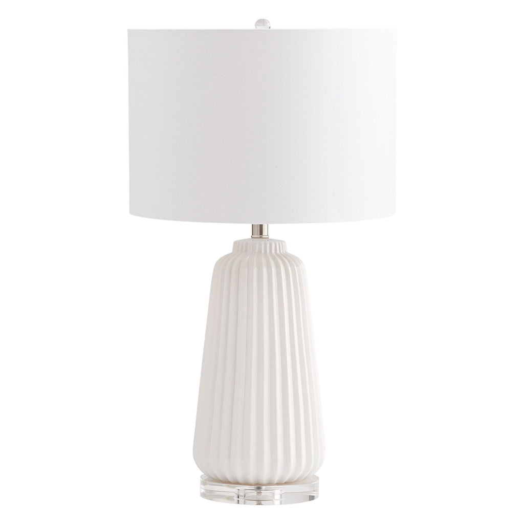 Illuminate any room with the eclectic silhouettes of Cyan Design table and desk lamps. Place on any tabletop for a functional yet warm ambience. Sleek, smooth ridges bring incredible texture and refinement to this ceramic table lamp. Charming on a side table or decorating a nightstand, this engaging design features a crystal base with a white finish over ceramic construction. A white drum shade with a white lining continues a monochromatic theme, ensuring a clean and composed to complement modern living.