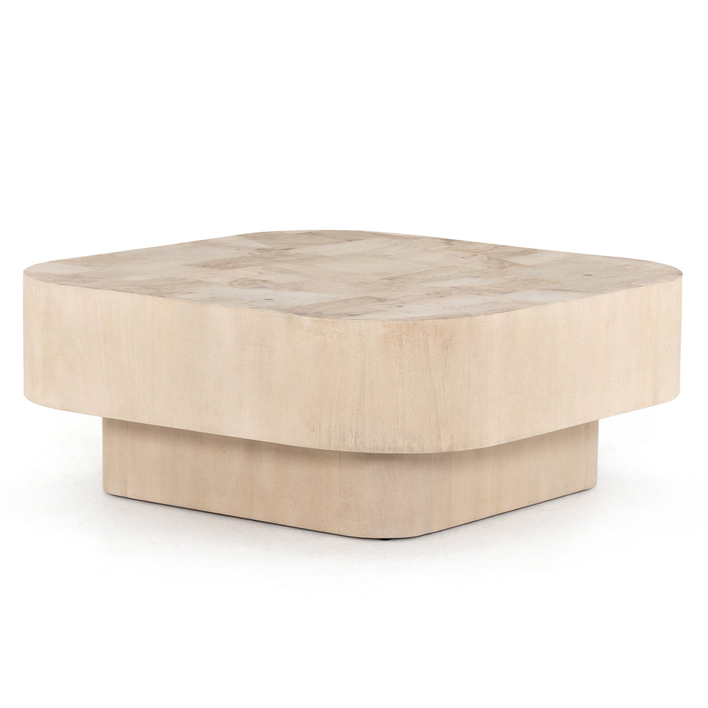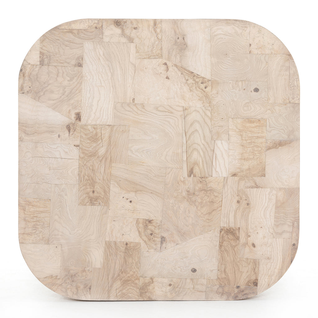 Made from burl, a soft-squared tabletop features a patchwork pattern to bring novel movement to the modern coffee table. Veneer sides and an inset base complete a beautifully light look.
