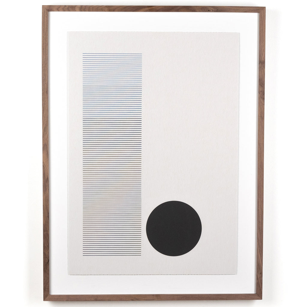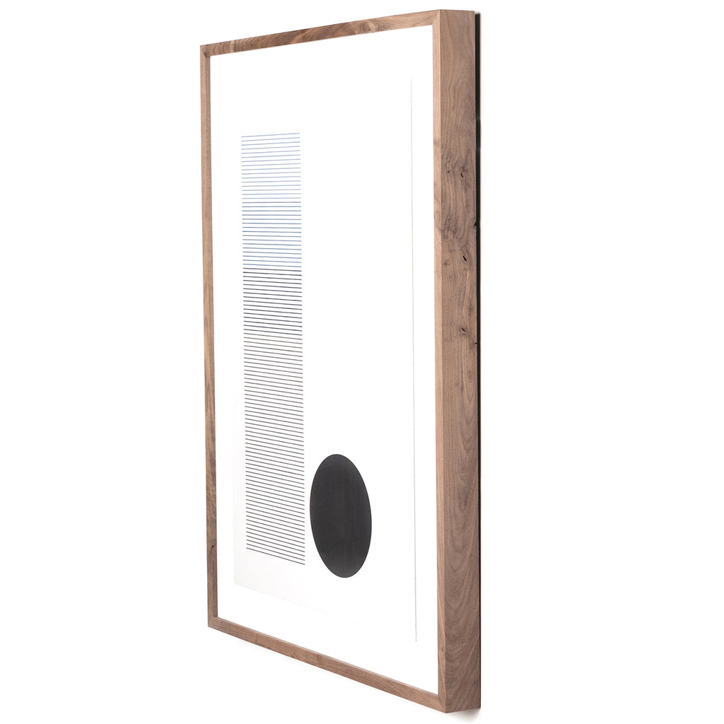 New Zealand artist Roseanne Kenny looks to the abstract and linear to shape her bold-but-minimalist pieces, starting with a pencil sketch then recreating each in digital form. Framed within rustic walnut for a gallery-quality look. Handmade in Austin, Texas.