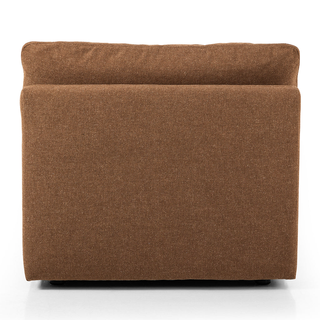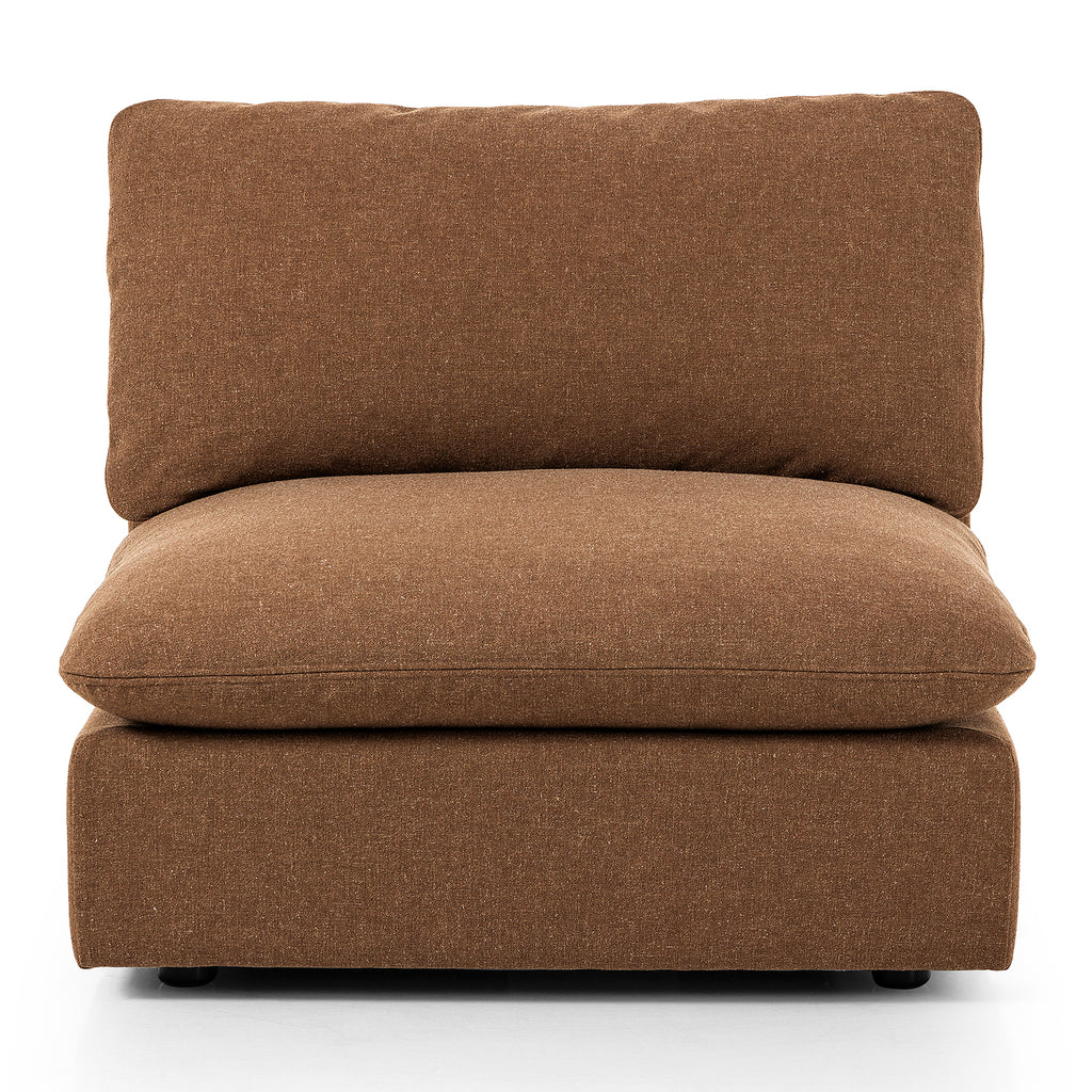 Inflated, pillow-inspired cushioning all around brings cozy comfort to the room. High-performance linen offers the best of both worlds on this plush and welcoming sectional piece. Designed with feather-fiber blend cushioning and a soft, durable linen fabric. Armless piece to matching sectional.