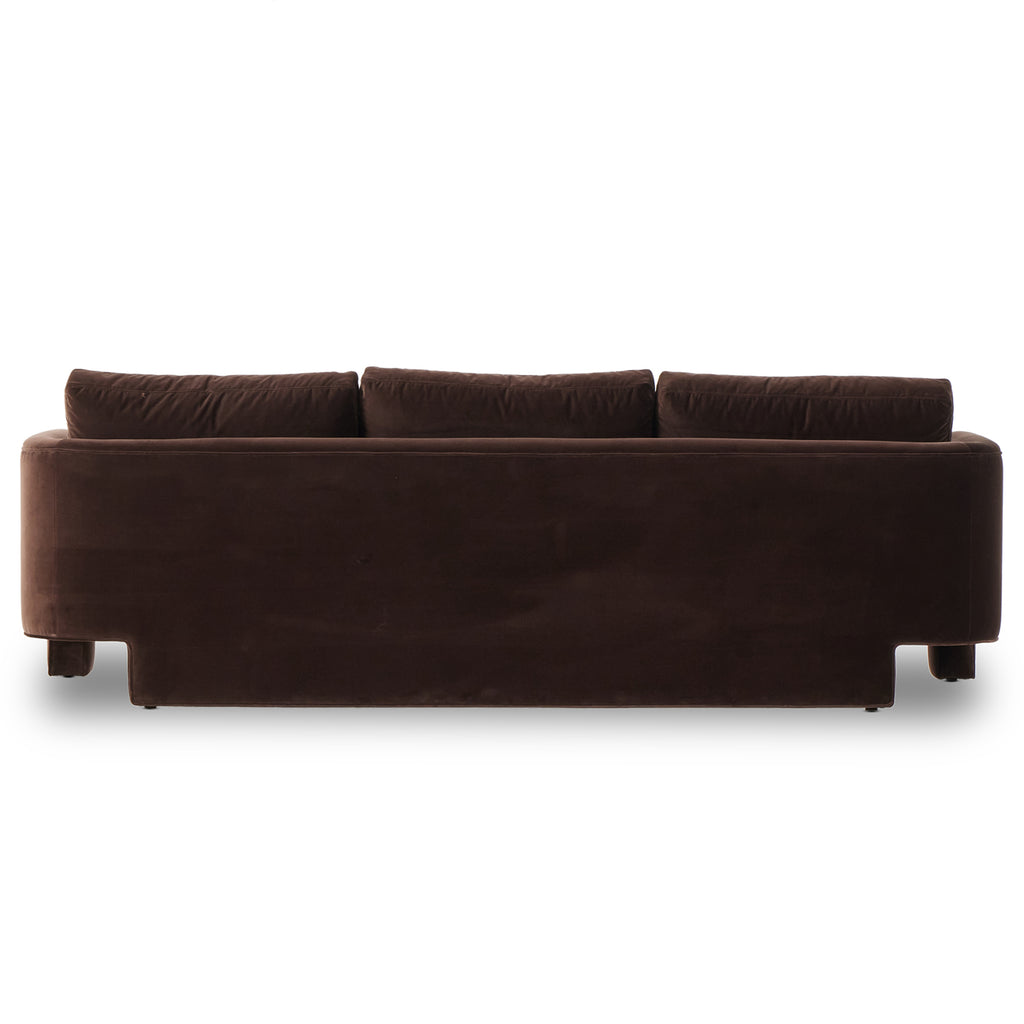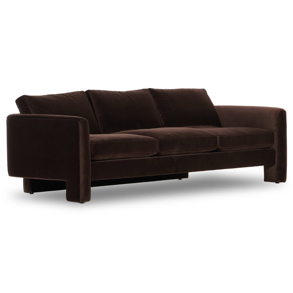 Float-style this unique sofa in a room to show off design details like sleek lines and rear cutouts. Designed with S spring construction, foam and fiber seat cushioning and loose feather-blend back cushions.