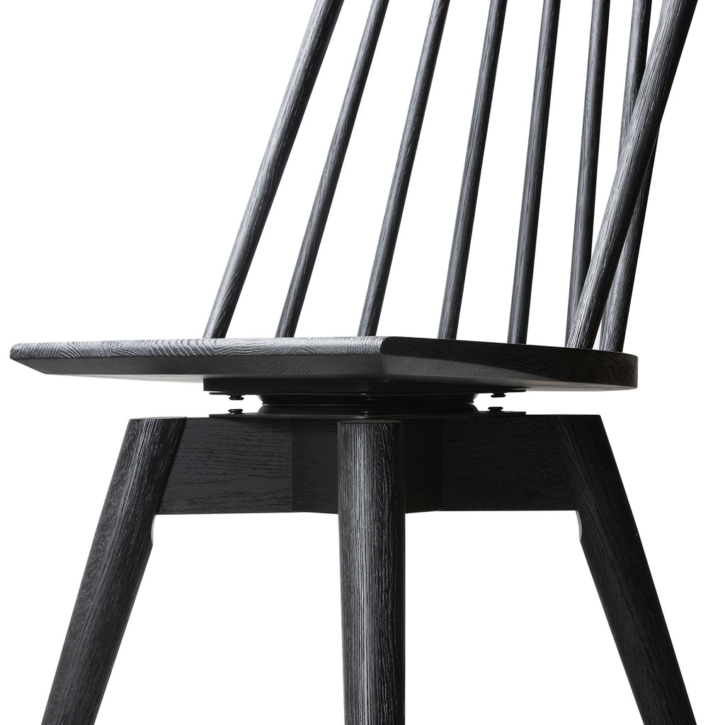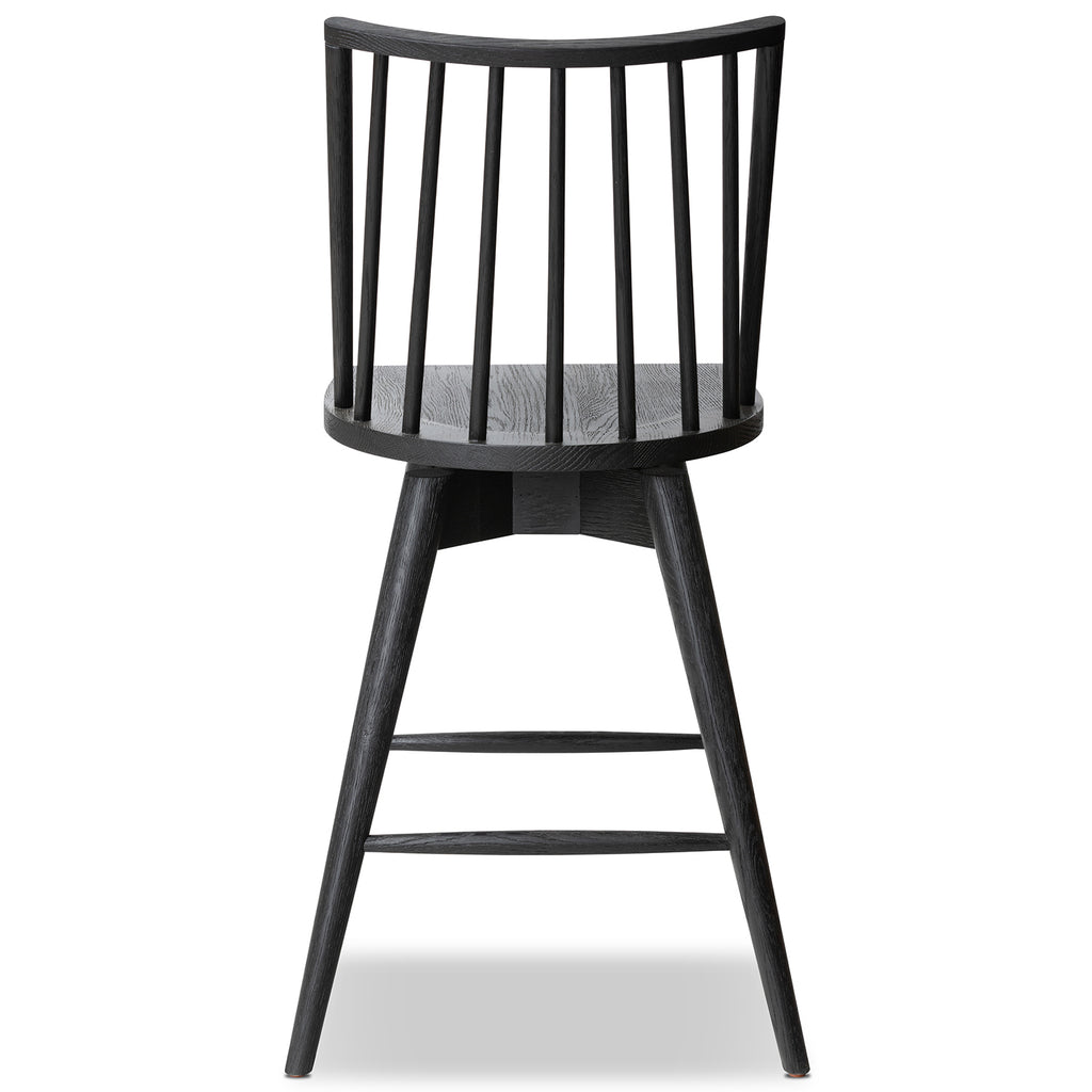 A new take on the traditional Windsor. This tall beauty is wire-brushed to highlight the cathedral grain of black oak. Perfectly sized for the counter,with a swivel for ease and comfort.