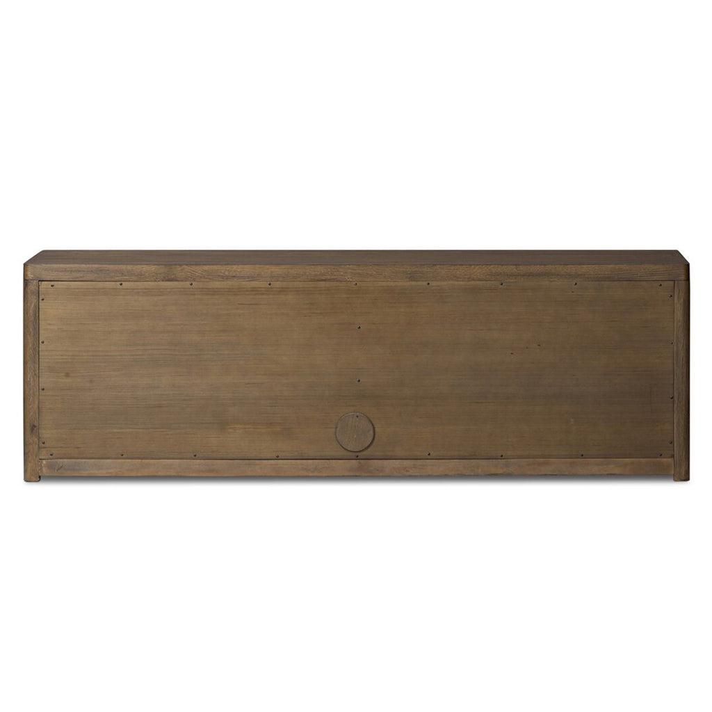 Bring Americana vibes to your space with a large, storage-driven bookcase made from warm oak and oak veneer. Plenty of interior space for media storage, with a slide door-front center compartment. Rear cutouts for cord management.