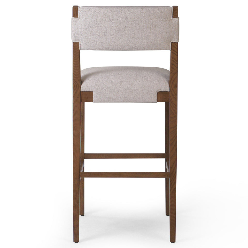 Light-finished solid ash frames linen-blend high-performance seating, bringing a bright, organic look to this bar stool. Performance fabrics are specially created to withstand spills, stains, high traffic and wear, ensuring long-term comfort and unmatched durability. Steam fabric regularly for a crisp, tailored look.