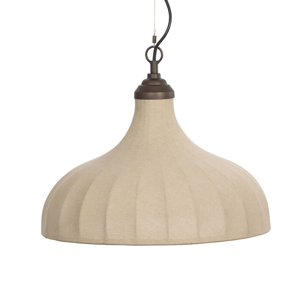 A bell-shaped linen shade with brass boning updates a traditional lighting look. Pendant brings warm illumination to any space while discreet cord management keeps the look polished. Ideal for crafting warm, inviting reading corners or bedside ambiance.