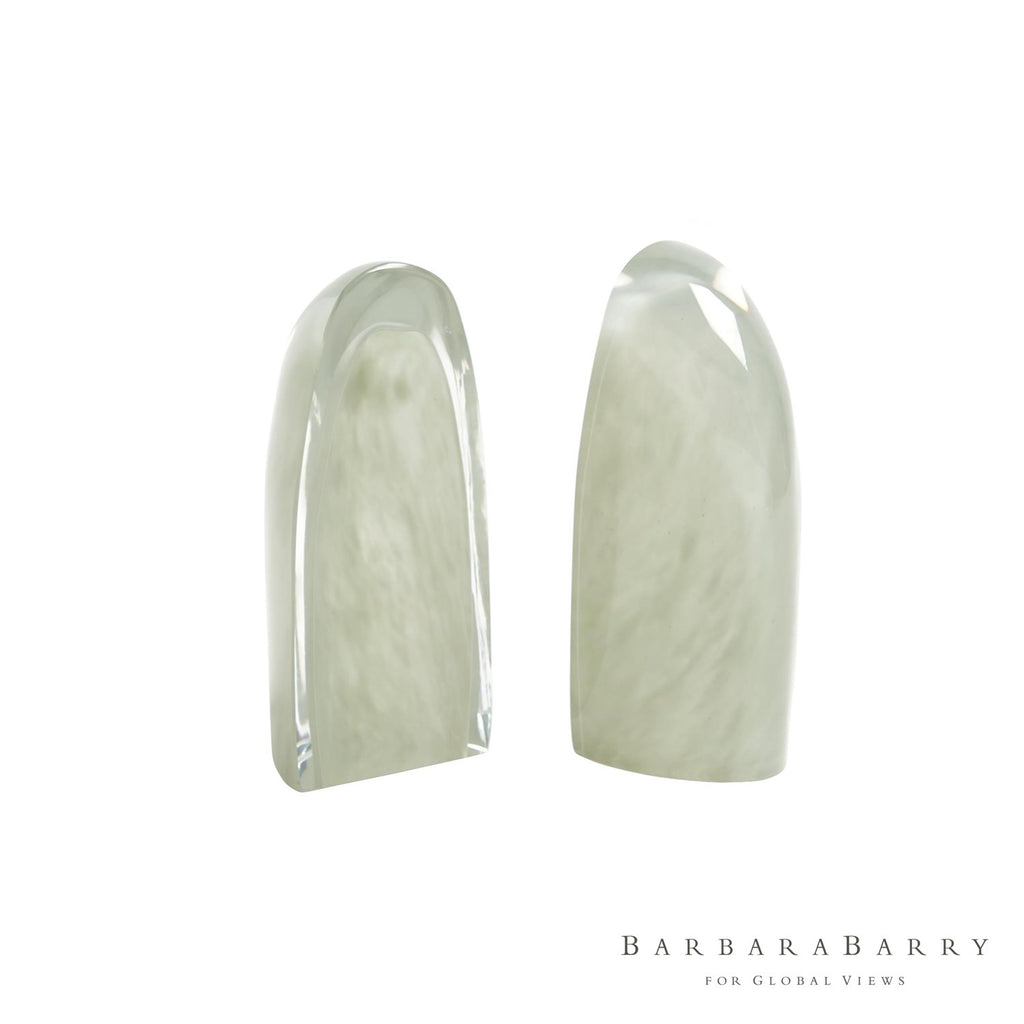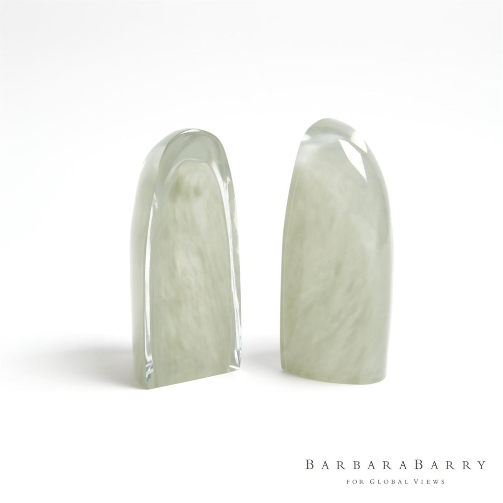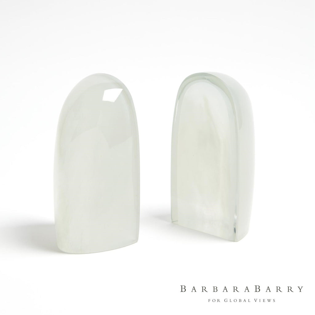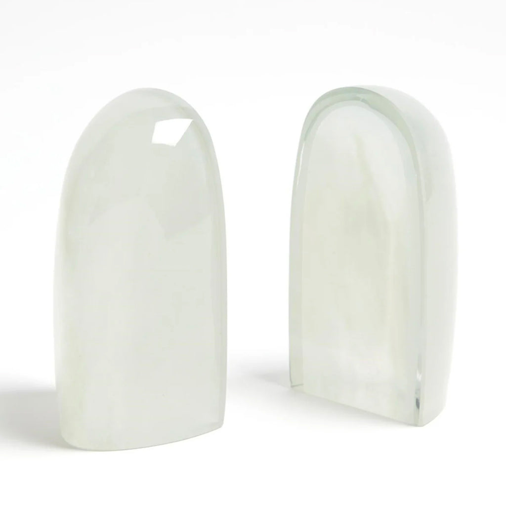 Floating iceberg bookends in frosted and polished glass. Part of the Chalet Collection.