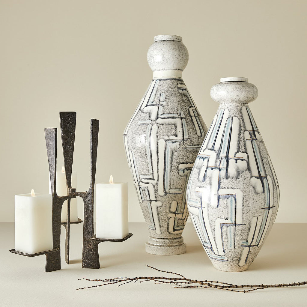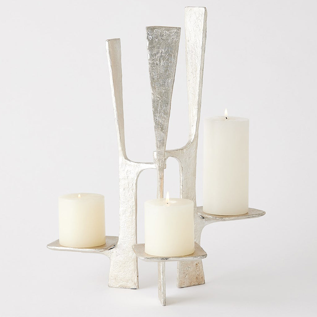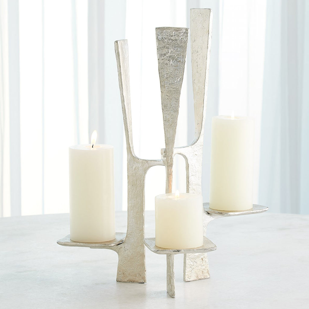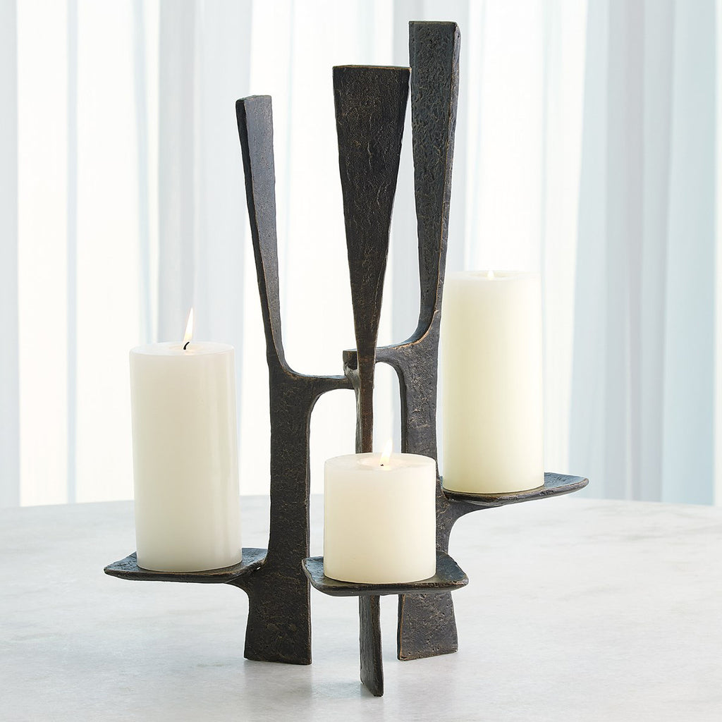 Illuminate your space with the Triune Candleholder, crafted from cast iron and adorned with a hand-applied finish. This elegant piece holds three candles, creating a warm and inviting ambiance for any setting.