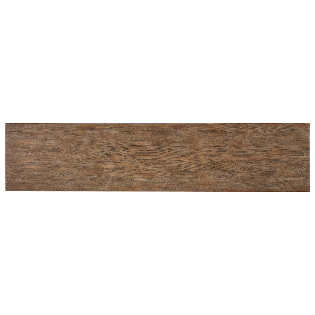 Featuring the gentle warm Honey finish that looks as if it has been passed through the generations with a parquet design on the door fronts, the charming Americana Entertainment Center has shaped bracket legs. Accommodating up to an 80-inch TV, the credenza has four doors with soft-close hinges and magnetic catches and two adjustable wood shelves the left and right-side doors and two adjustable shelves the pair of center doors. Crafted of Oak Veneers with a Solid-Wood Edge top, there’s a ventilated back panel and wire management holes. Accommodates up to an 80-inch TV.