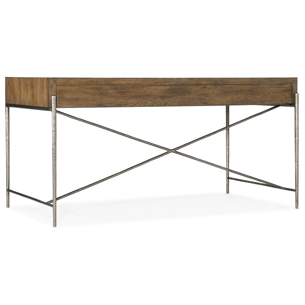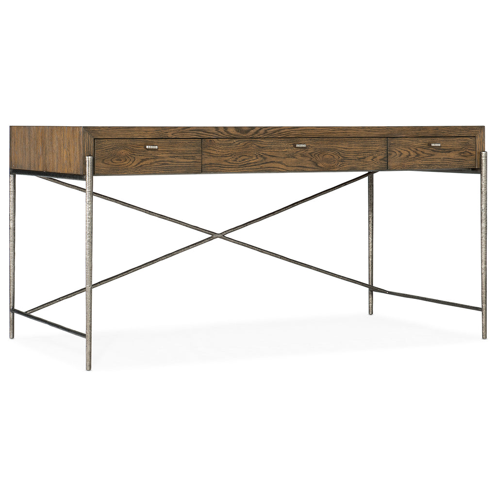 With exquisite scale and craftsmanship, the Chapman Writing Desk is crafted of White Oak Veneers in a warm brown Sorrel finish with thin forged pewter metal legs, an X-stretcher back and custom hand-hammered metal drawer pulls. Featuring 3 drawers, the left and right drawers have 2 removable dividers, and the center drawer has a drop-front for keyboard use and a cutout in the back of the drawer for wire management. There’s a pencil tray and writing slide for use in either left or right drawer.