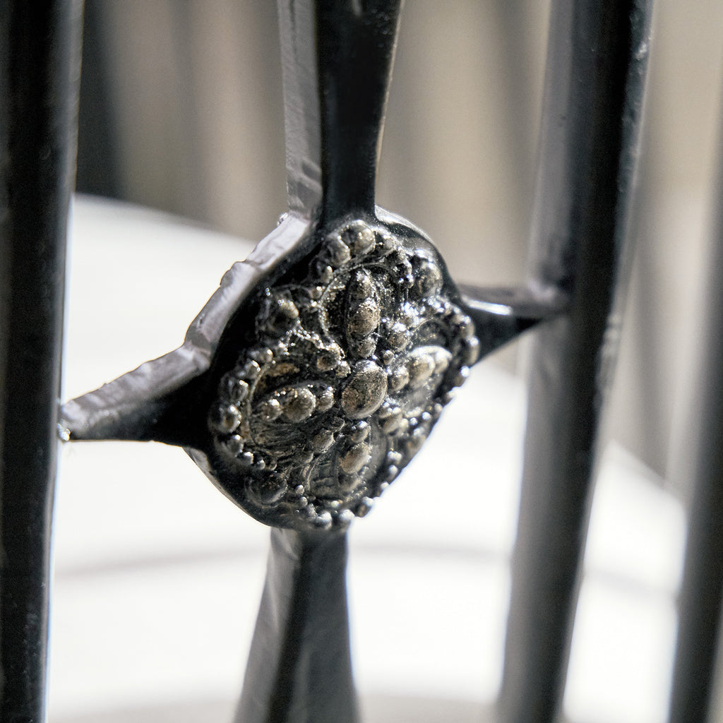 Vintage yet modern, classic yet chic, the Sanctuary Couture Host chair is not your mama's rake-back chair. Striking a profile that will turn heads and invite you to sit for a while, the host chair contrasts the dramatic Noir black painted finish with a performance fabric seat in Metal Icicle, a dreamy white with silver undertones.