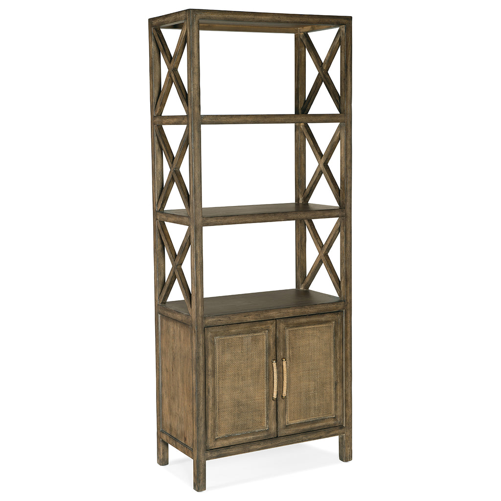 Create a resort-inspired retreat with the Sundance Entertainment Pier, featuring 2 rattan-front doors complementing a wood frame crafted of Pecan Veneers finished in the rich brown Cliffside with light burnishing on the edges. The laid-back vibe of this California casual-inspired piece is enhanced by X motifs on the sides of the shelves. Behind the doors is one adjustable vented shelf, and two fixed shelves. This piece is designed to bunch with coordinating with the 6015-55465-89 Sundance Entertainment Console full entertainment wall, and can be used alone.