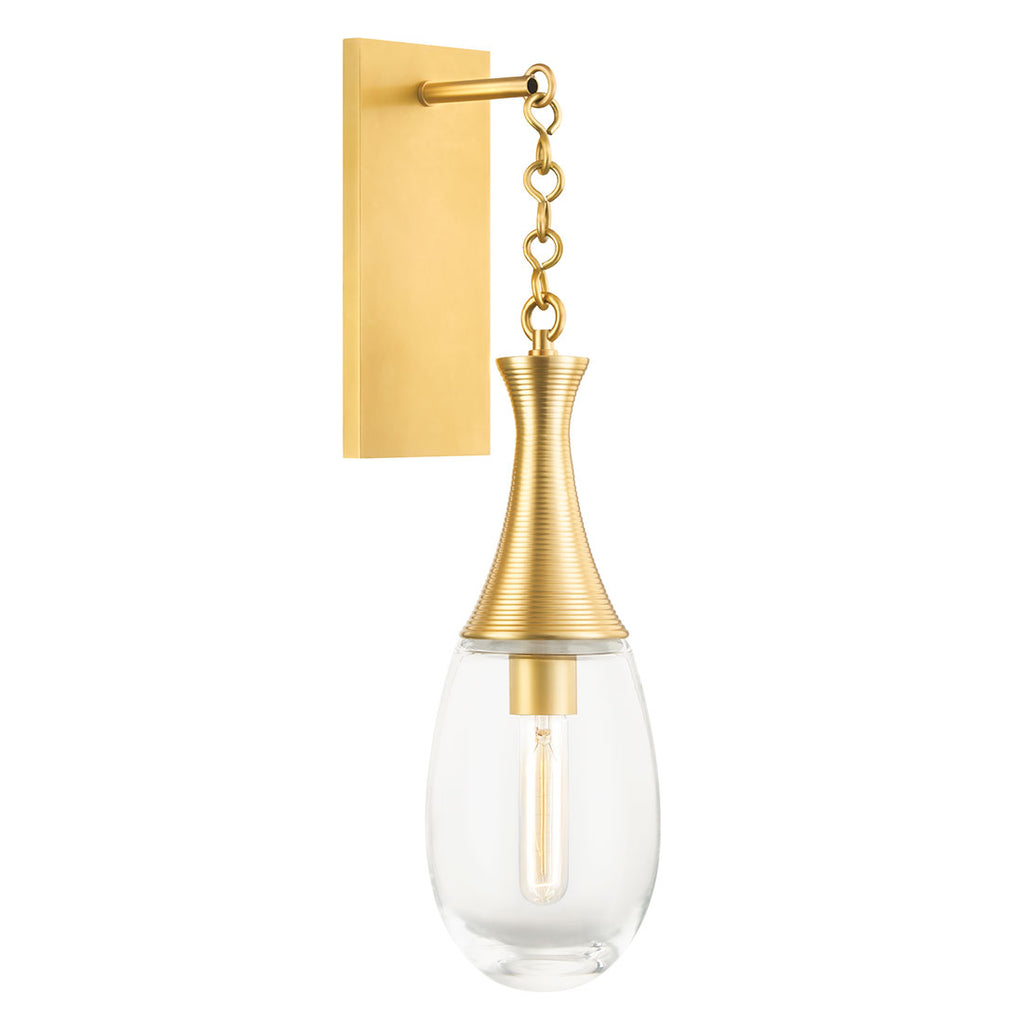 Renowned for built-to-last quality with a timeless feel, Hudson Valley offers a modern lighting collection with elegant touches, recalling vintage inspiration. From dens and dining rooms to bedsides and bathrooms, modern Hudson Valley wall sconces add a pop of light and versatile elegance. Inspired by vintage perfume bottles, the Hudson Valley Southold wall sconce is a breath of fresh air. Drops of thick clear glass fall from incredibly detailed ribbed metalwork in Aged Brass or Black Brass. Like jewelry for the wall or ceiling, Southold is an ideal choice for the kitchen, bathroom or even the bedroom.
