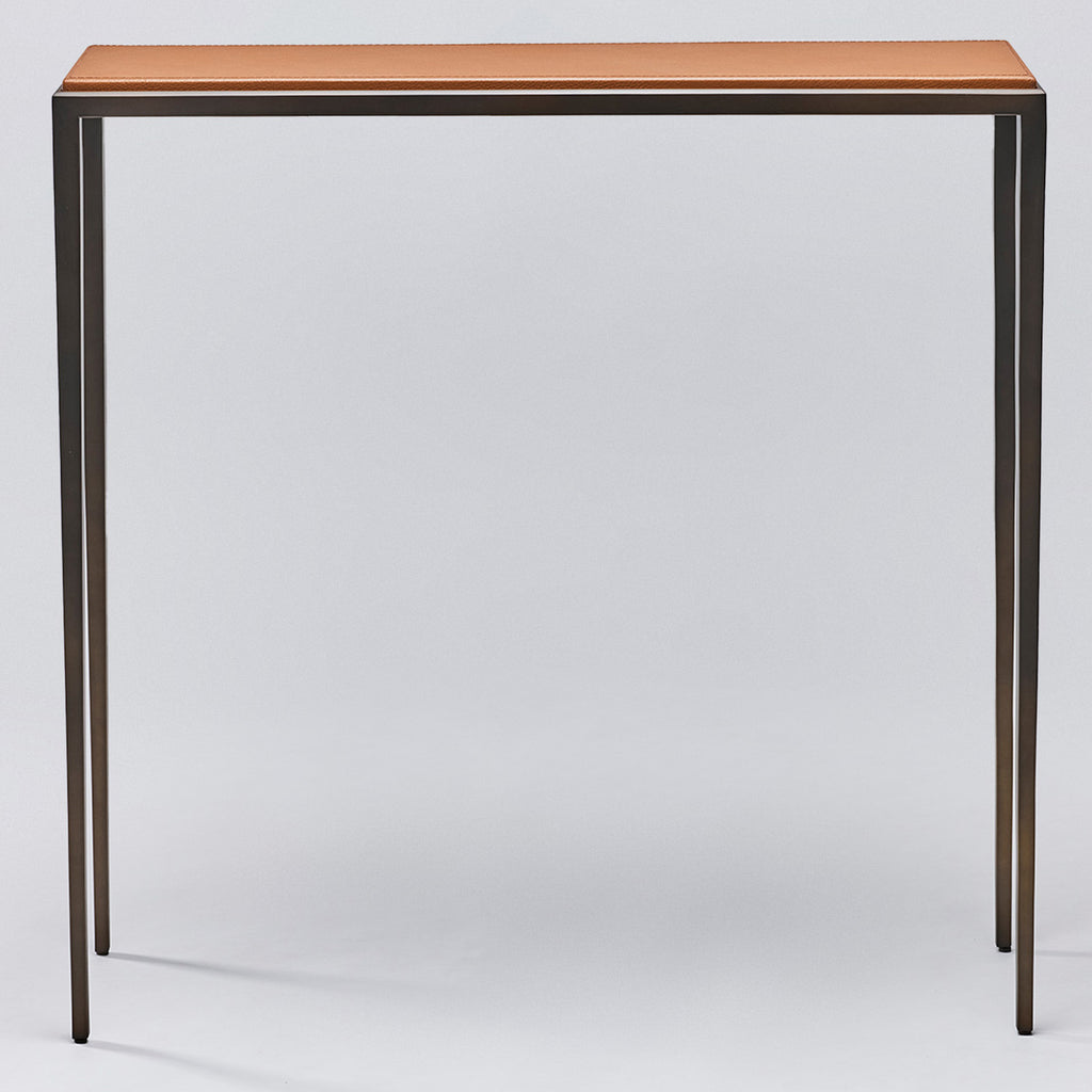 With a leather top and classic bronze cast iron legs, the Auburn Console Table is an au courant take on a midcentury silhouette.