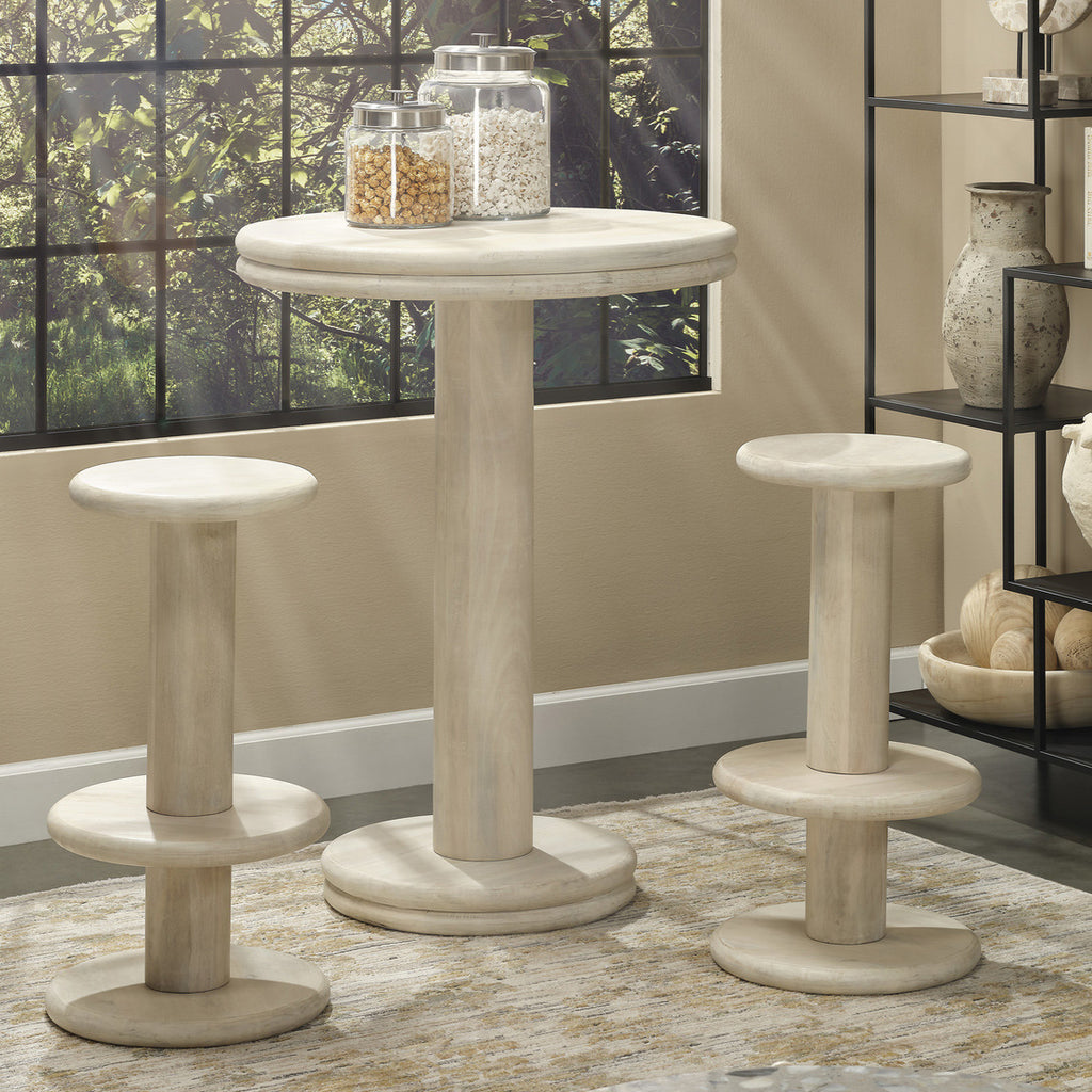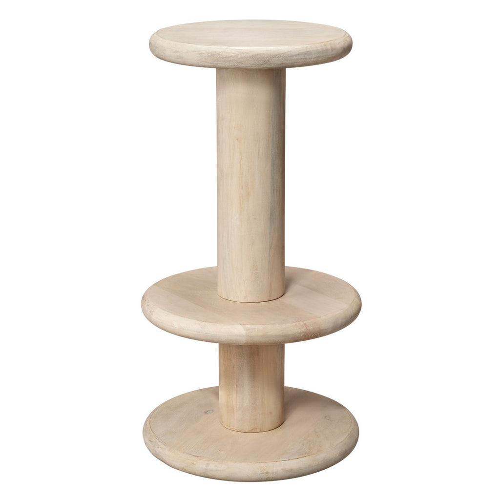 Drinks have never been more elegant than when sipped sitting on this sleek, chessboard inspired bar stool. Formed of three simple circles connected by a single pillar, it is clean, contemporary, and wildly sophisticated. Each seat is expertly hand-carved from mango wood.