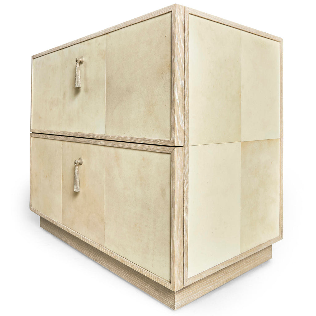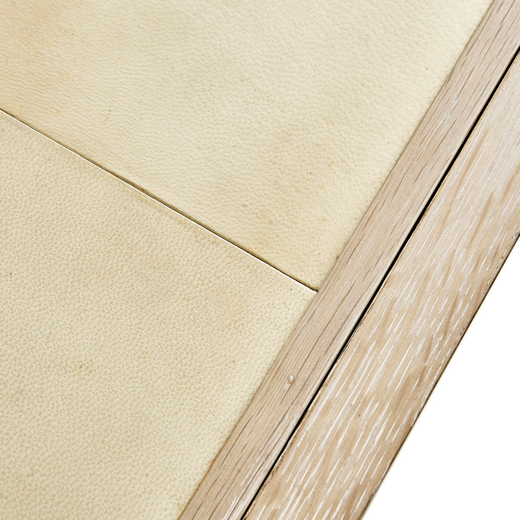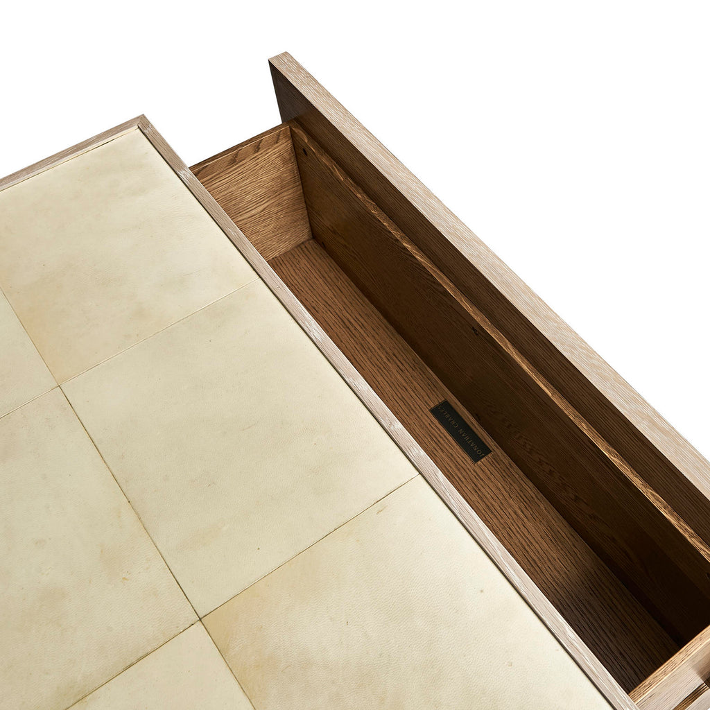 • Material: oak Solids, Parchment, Flat-Cut Random Match Oak Veneers, Glass, Brass