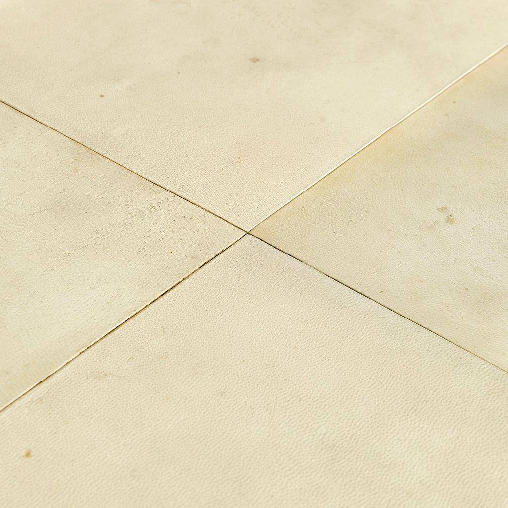 • Genuine, untreated parchment panels are sealed with a clear coat for durability