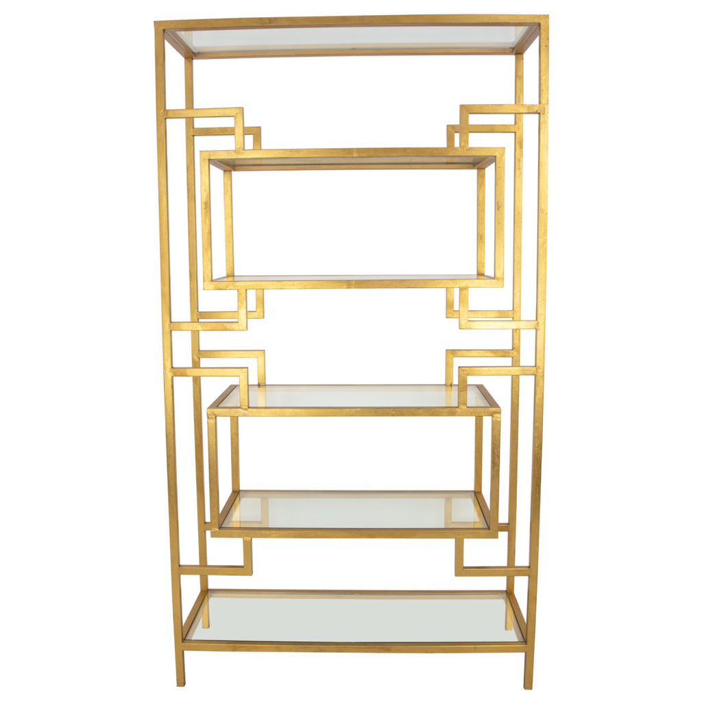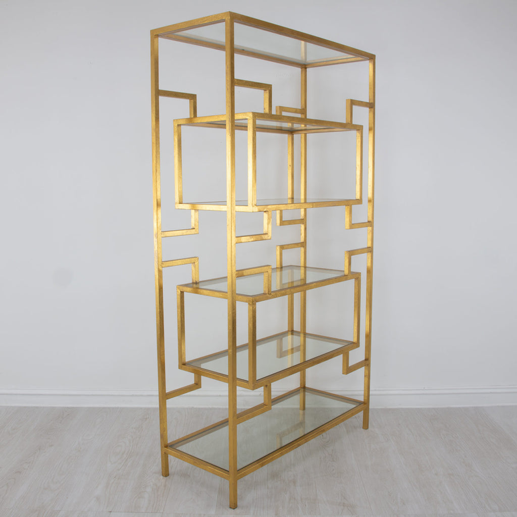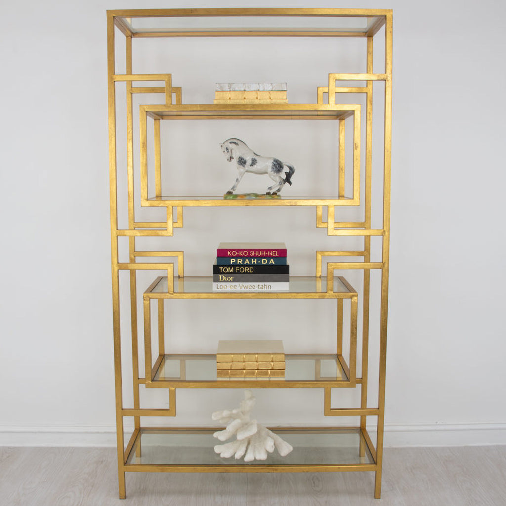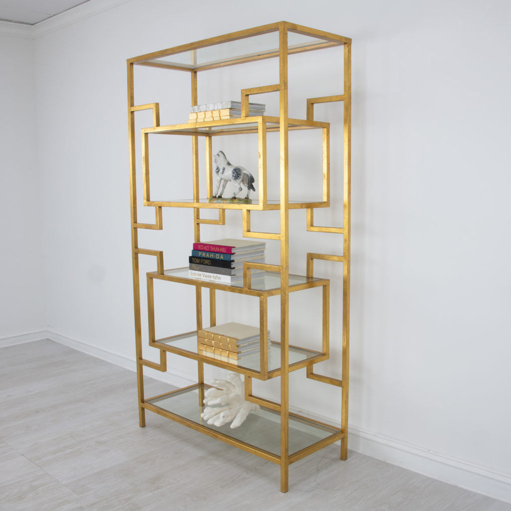 This beautiful gold leaf bookcase would be a great unique addition to your design work. The design of this unique piece makes it a statement piece for years to come. The quality paired with the antiqued gold leaf finish makes for a quality piece of furniture.