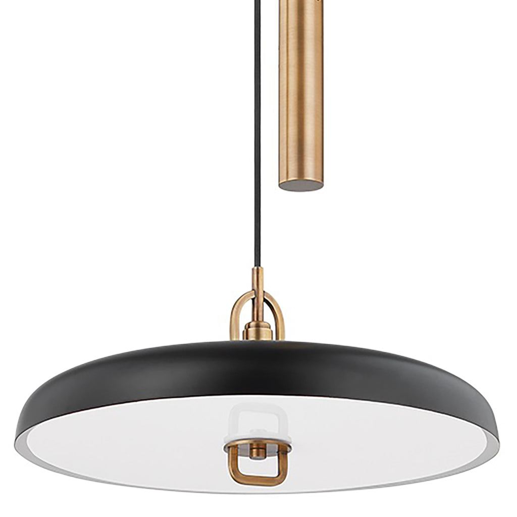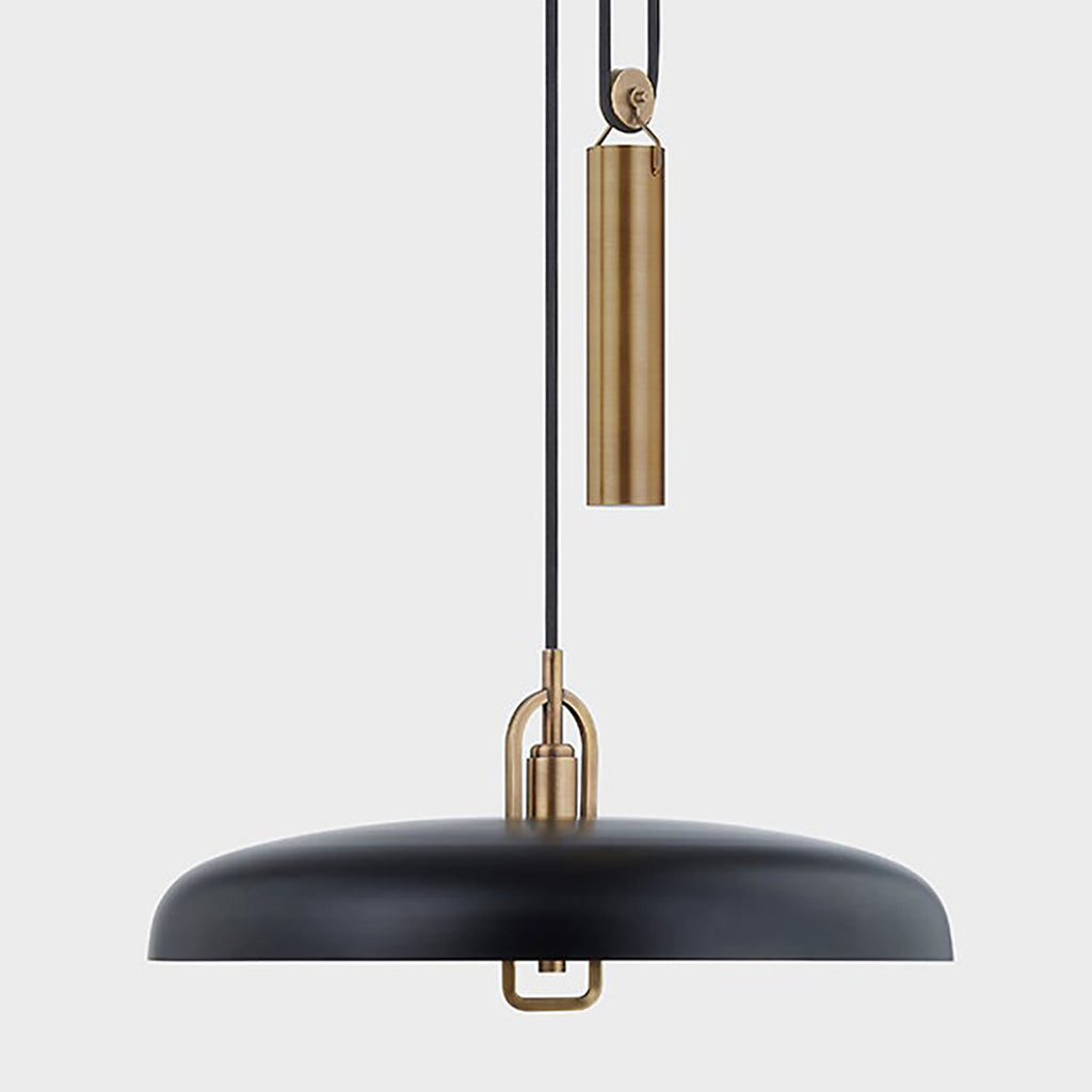 Troy Plummet Pendant has a modern look with vintage inspiration. The functional design features a striking Patina Brass weighted pulley that draws the eye and serves a purpose—it allows the height of the pendant to be adjusted. The Soft Black or Soft Sand shade paired with a matte white acrylic diffuser gives the piece a fresh feel that works well with many interior styles. Part of our Lauren Liess collection.