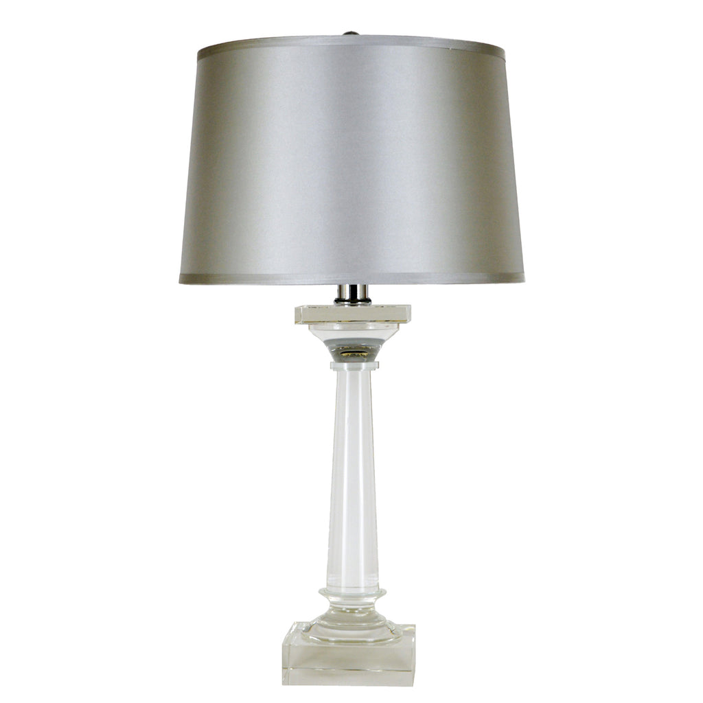 Hand made and hand finished solid crystal lamp with grey silk shade, perfect size for living room and bedrooms. French Wired( electrical cord exit near the bulb socket, as opposed to running down the lamp internally and exiting at the base.) Each Lamp Unique And Nicely Done.