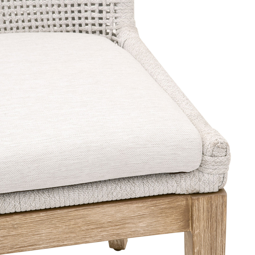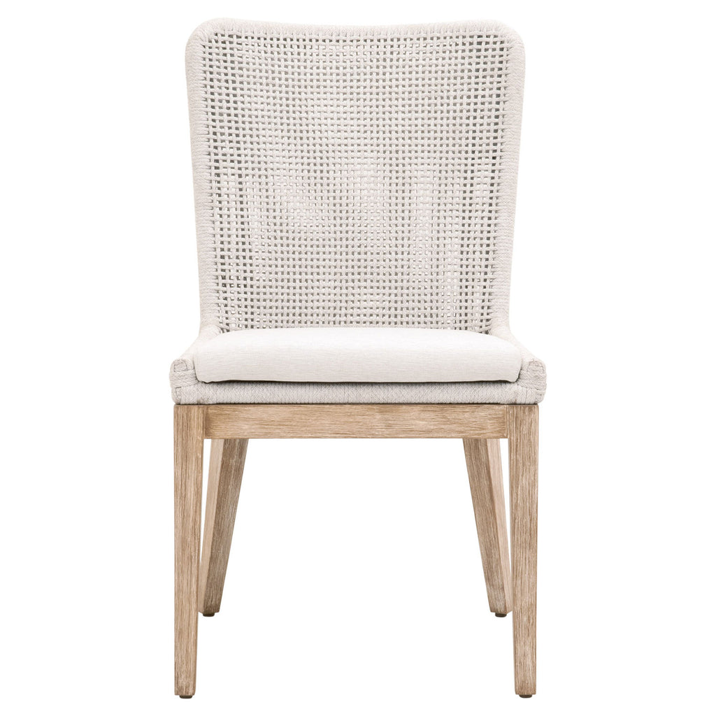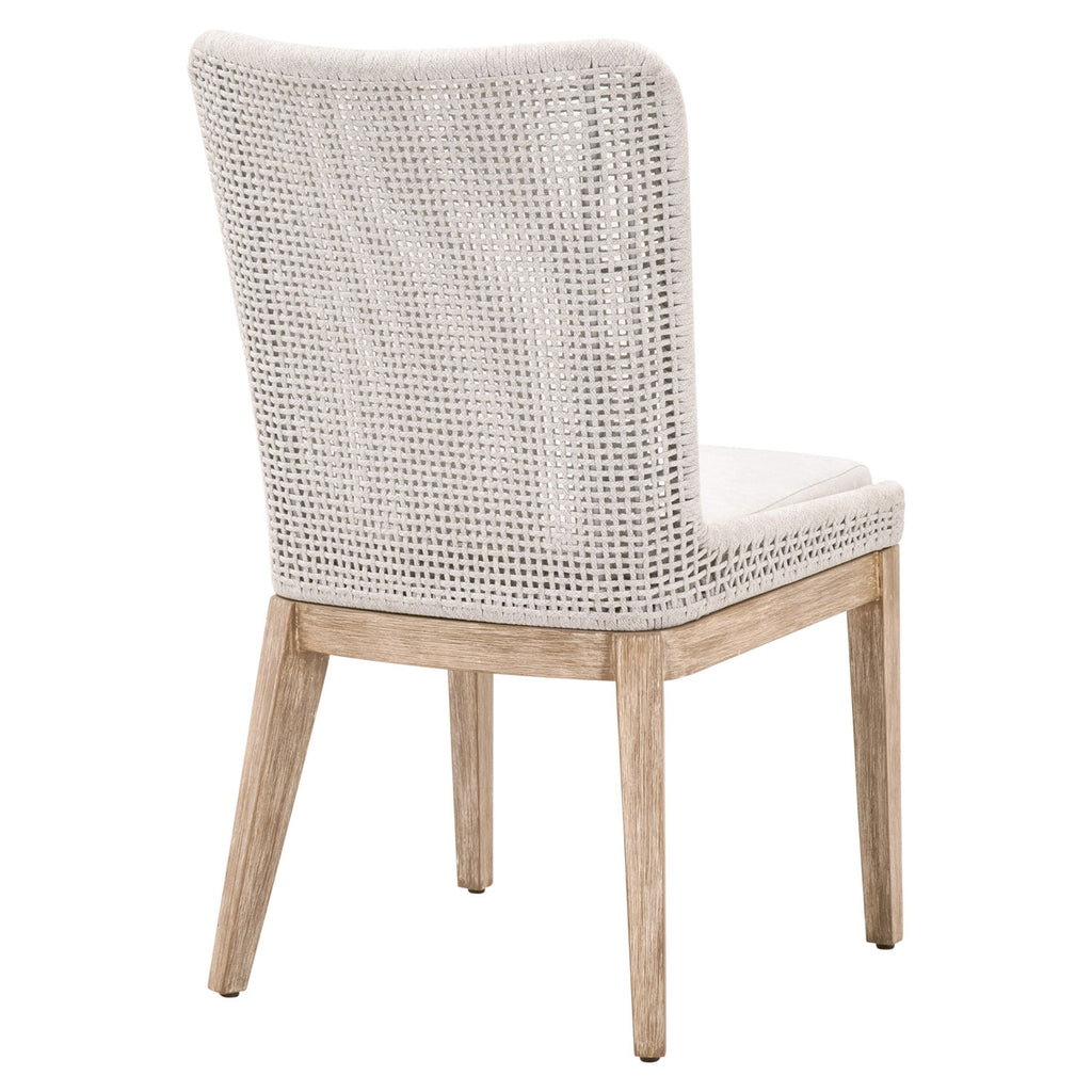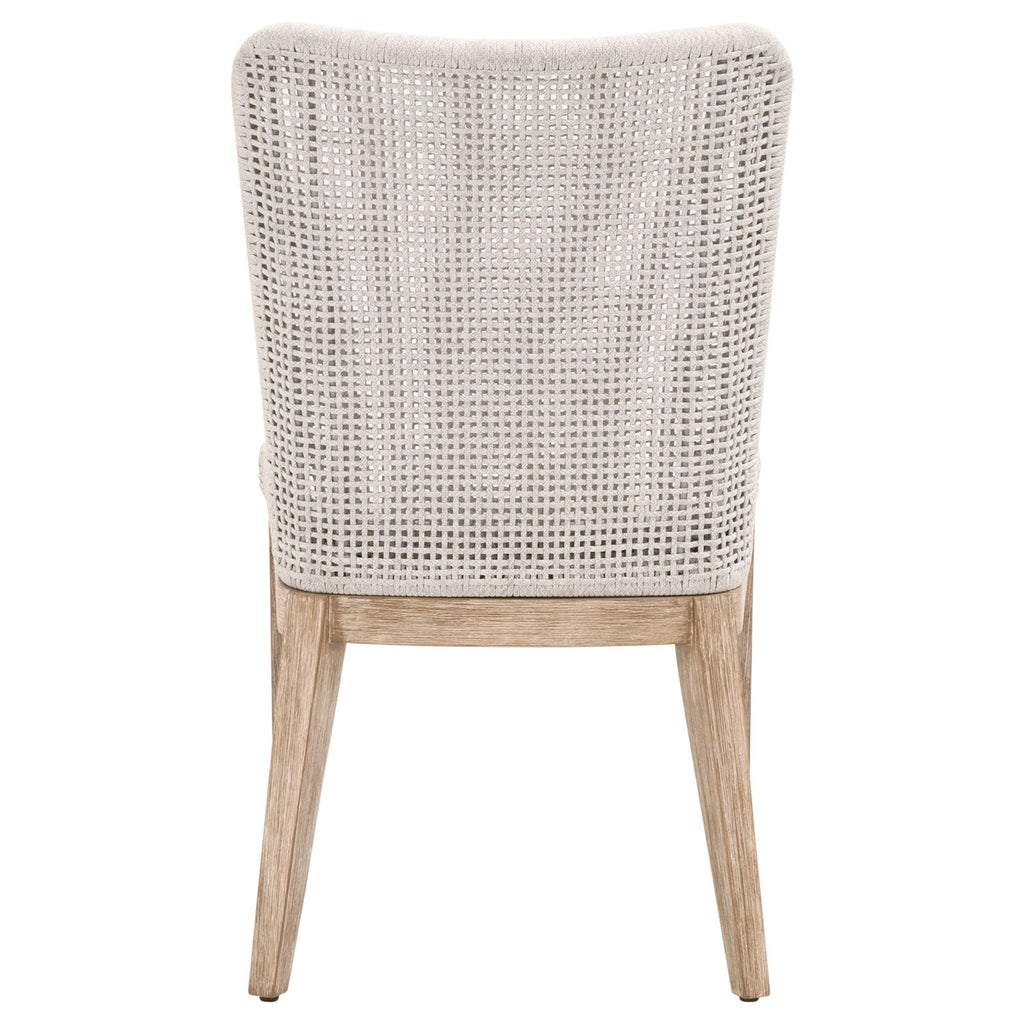 The Mesh transitional style dining chair featuring solid Mahogany base and intricate rope weave design.