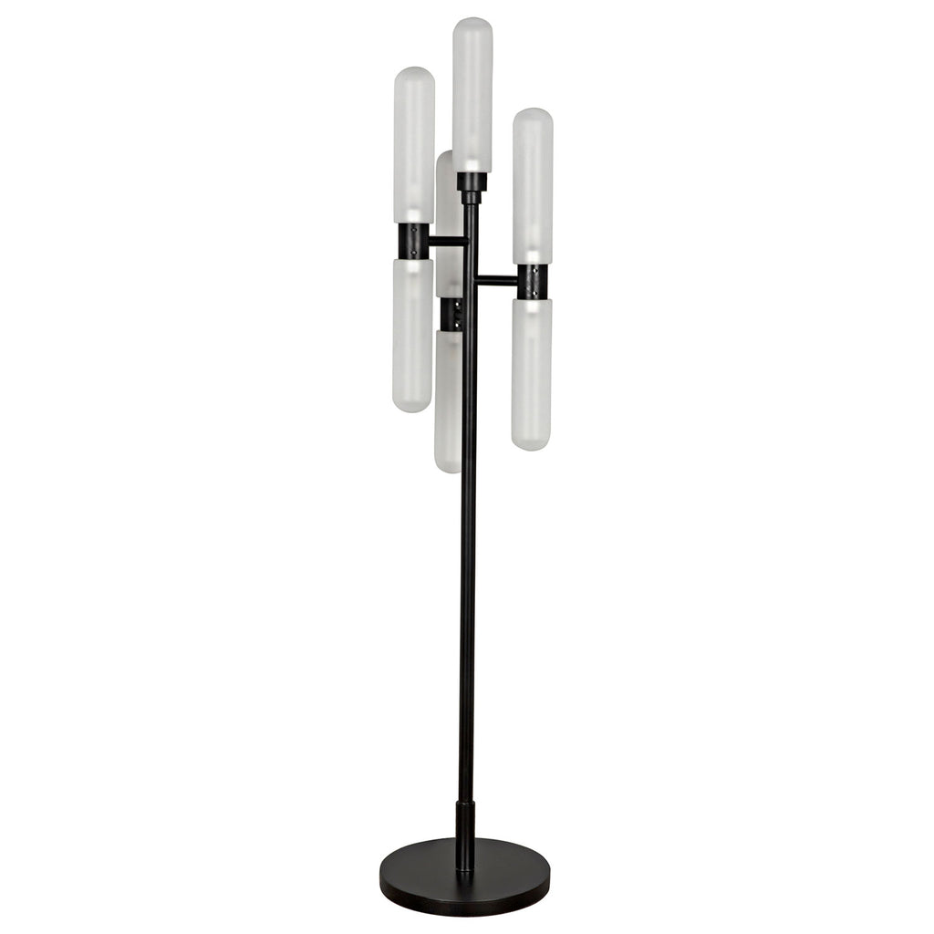 Set the mood in any room with the glow of the elegant Noir Dominique floor lamp. Updating a classic piece with modern design, this lamp's unique look intrigues with bold contemporary flair.
