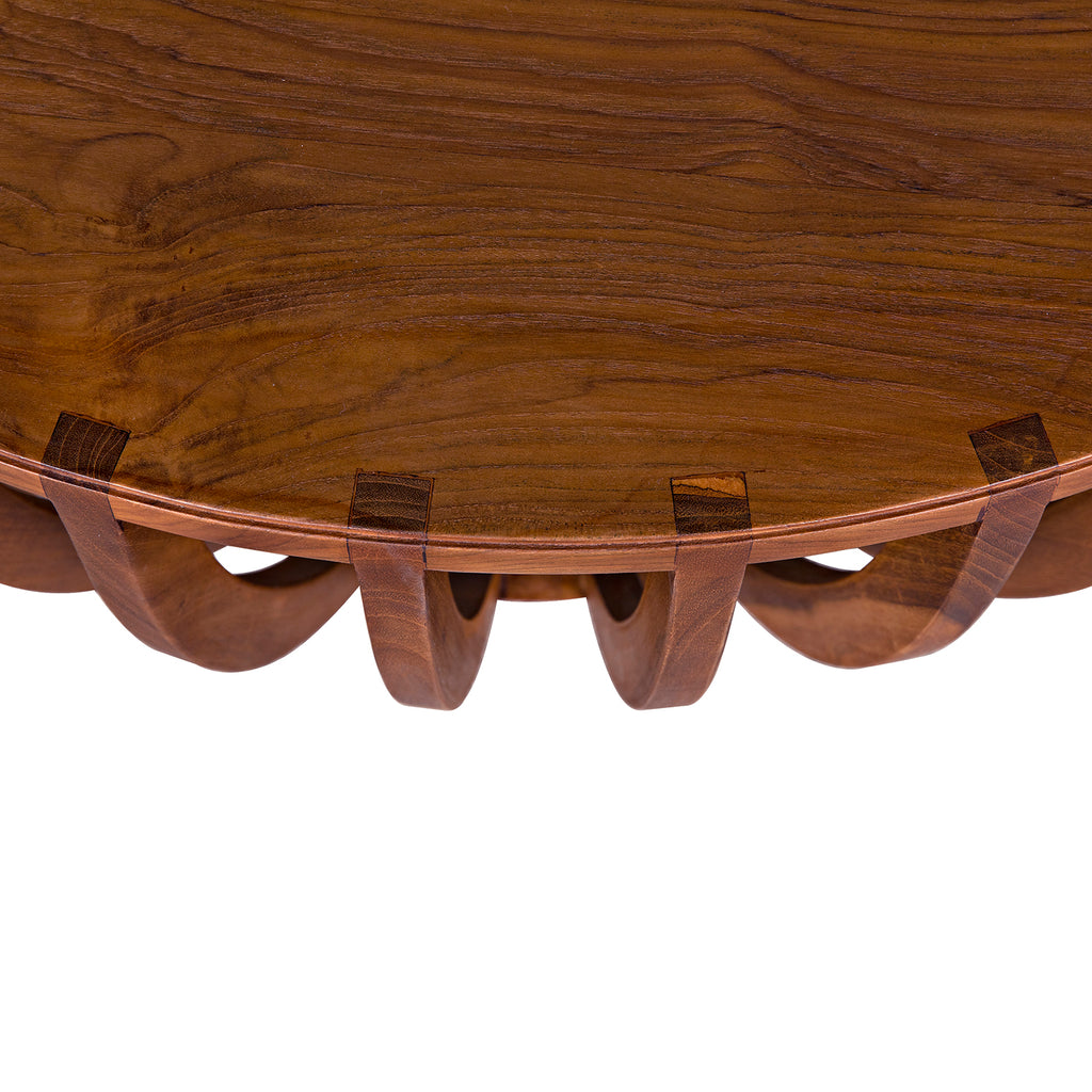 Sleek and modern meet for this simple but elegant coffee table made from teak and caning. A clear coat flat finish defines the sharp curves of the chair.