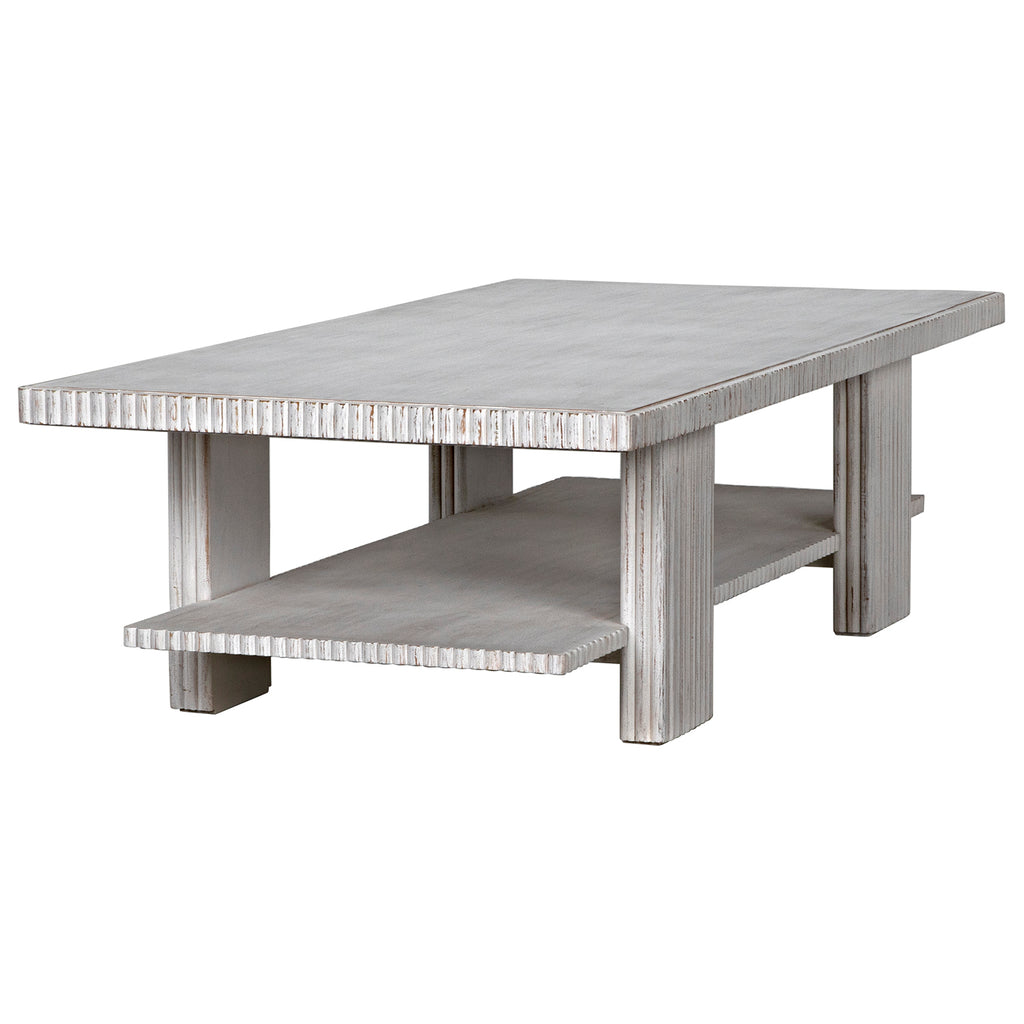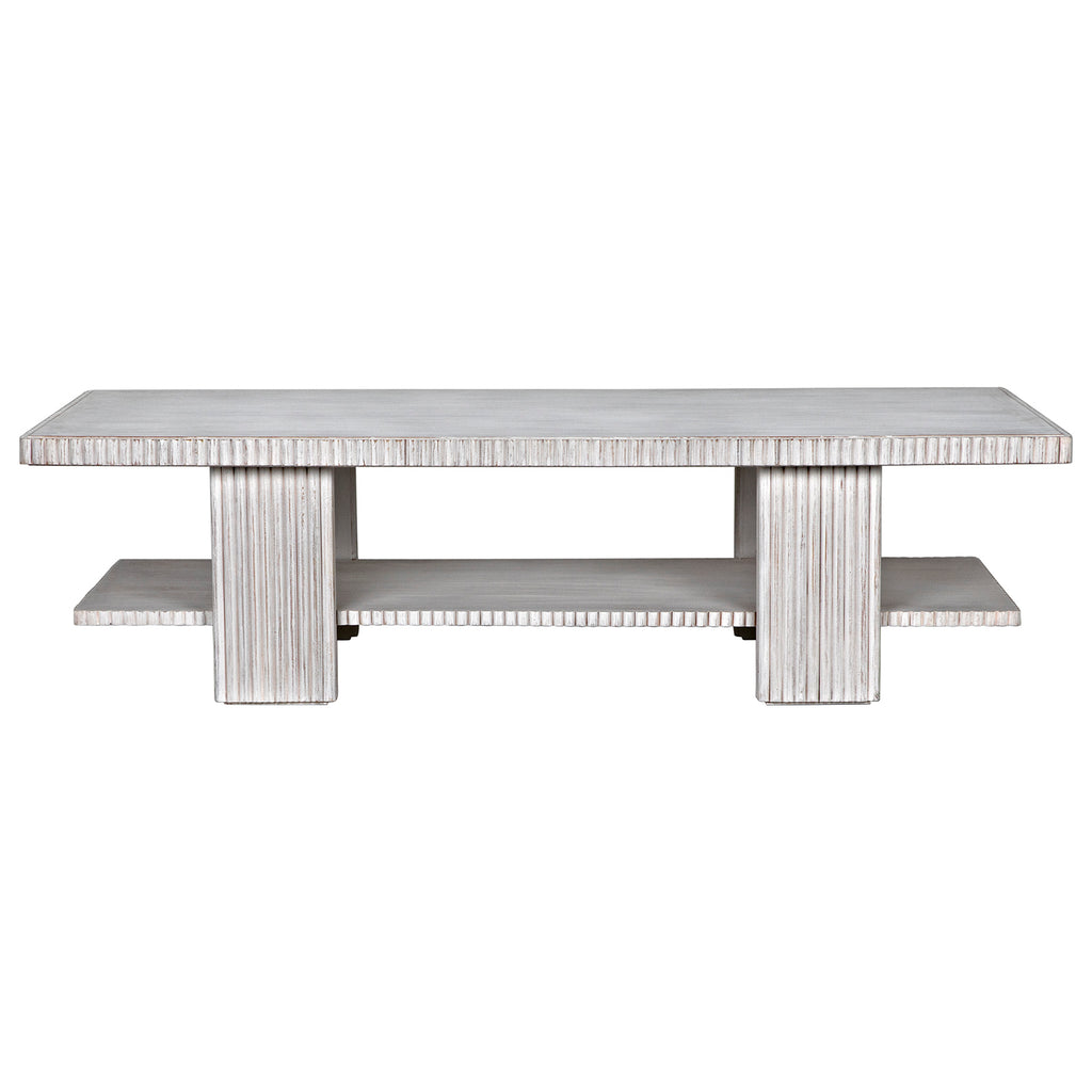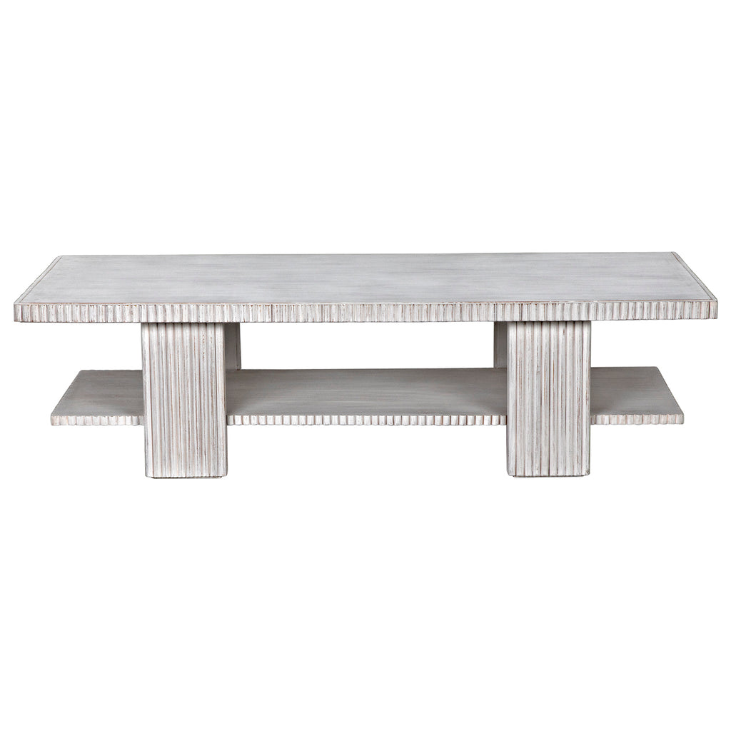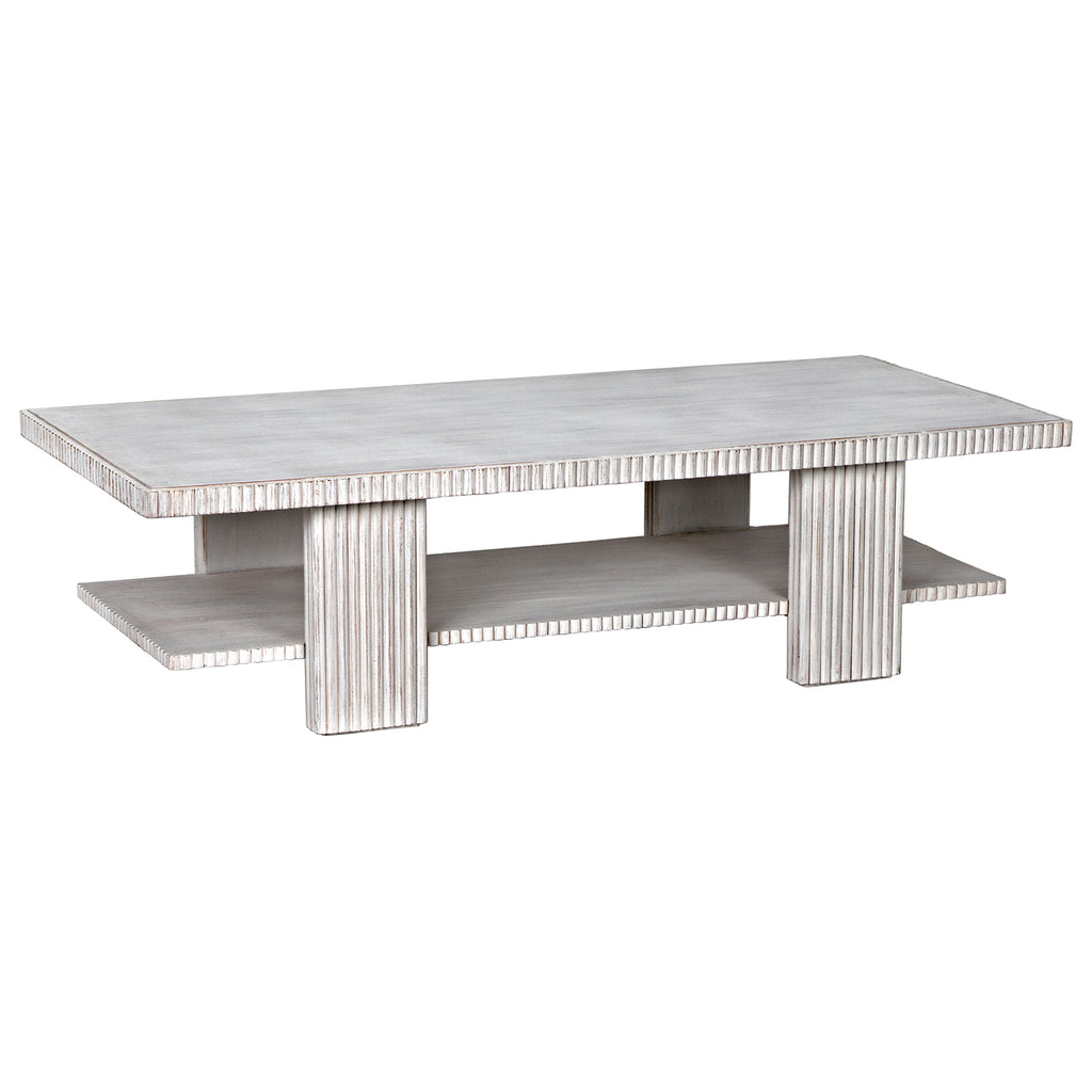 The Humphrey coffee table is a beautiful display of design virtuosity, artisan crafted in mahogany wood and finished in white wash for a modern, elegant, and contemporary look.