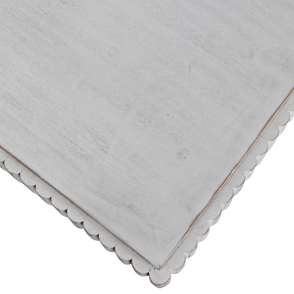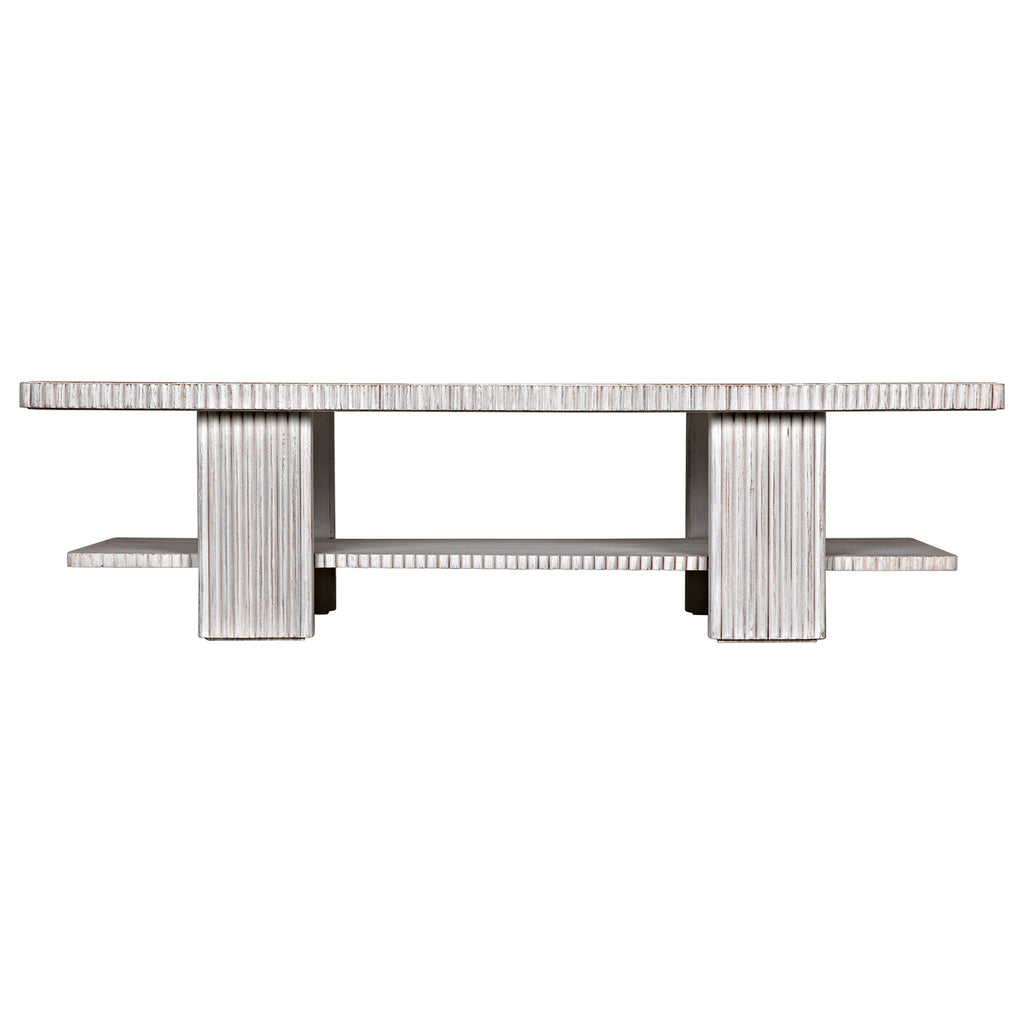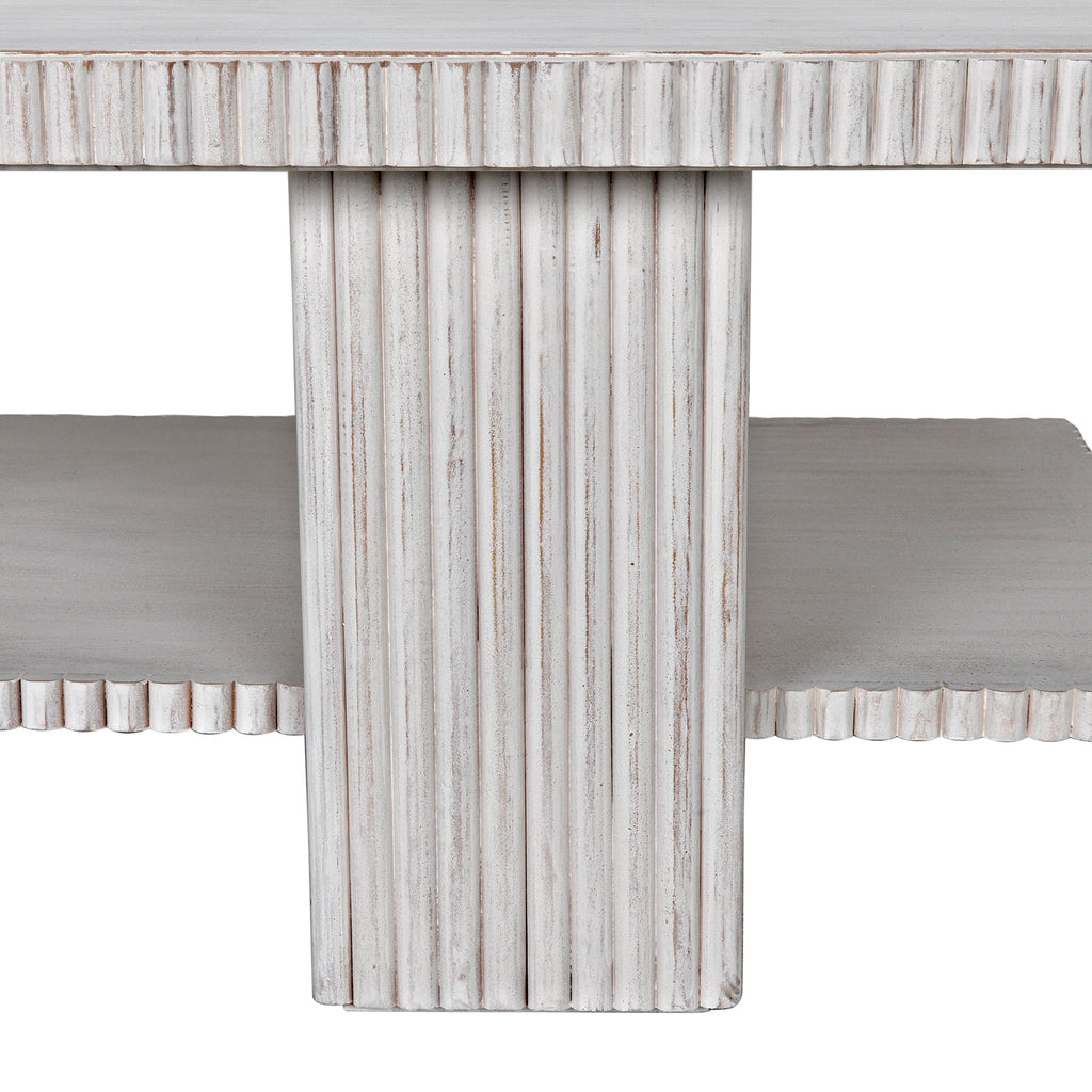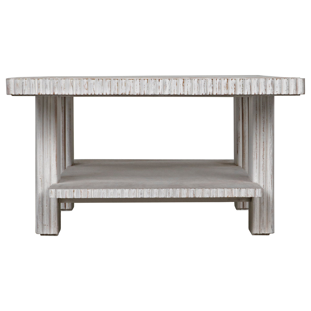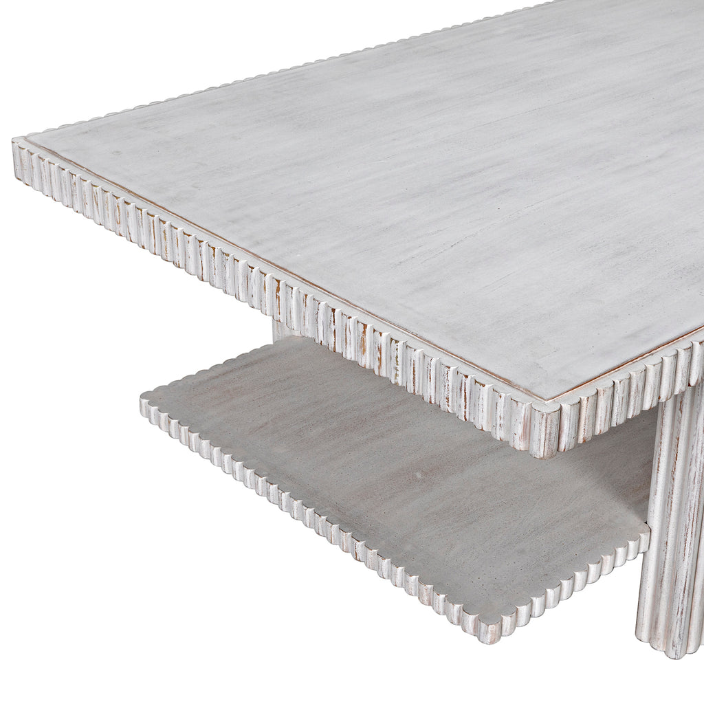 The Humphrey coffee table is a beautiful display of design virtuosity, artisan crafted in mahogany wood and finished in white wash for a modern, elegant, and contemporary look.