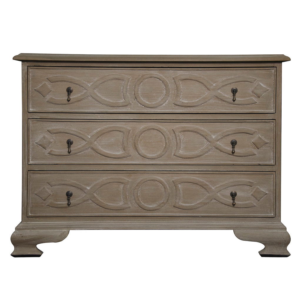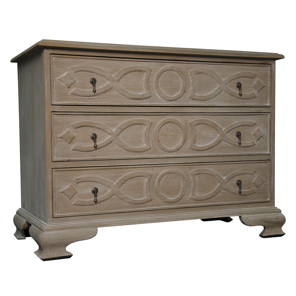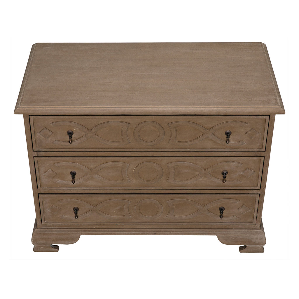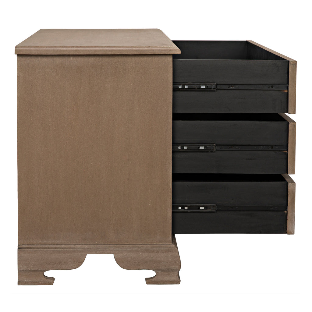 Store your everyday items in style with this contemporary dresser from Noir. Functional yet full of elegant detail, this furnishing updates any room with a bold statement. It's the decorative details that make this dresser stand out from the crowd. With intricately hand-carved legs, beautifully embellished drawers, and a softly weathered finish, it makes a lovely addition to any upscale chamber.