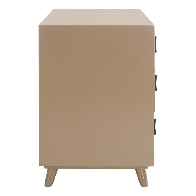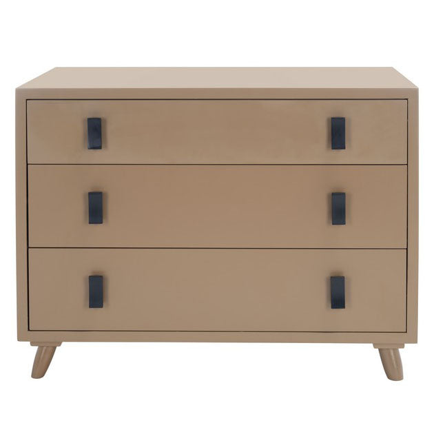 This 3-drawer Phillip chest offers a contemporary spin on vintage style. Ideal as a nightstand or as a chest in the living room, its neutral dark grey finish complements any décor. Its black metal hardware adds a touch of industrial luxe style to its drawers.