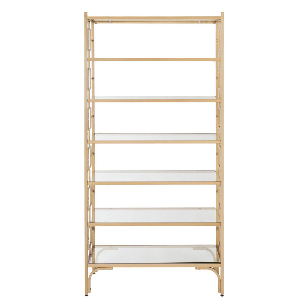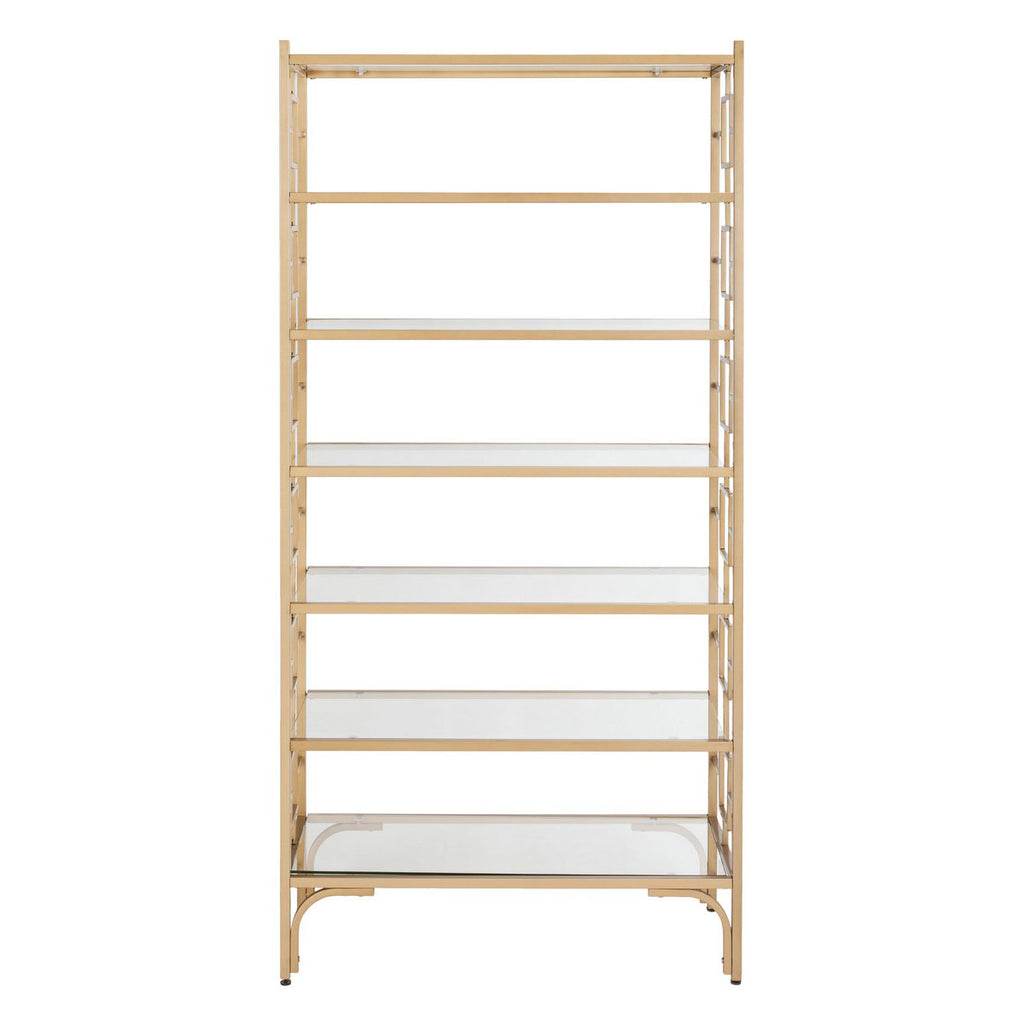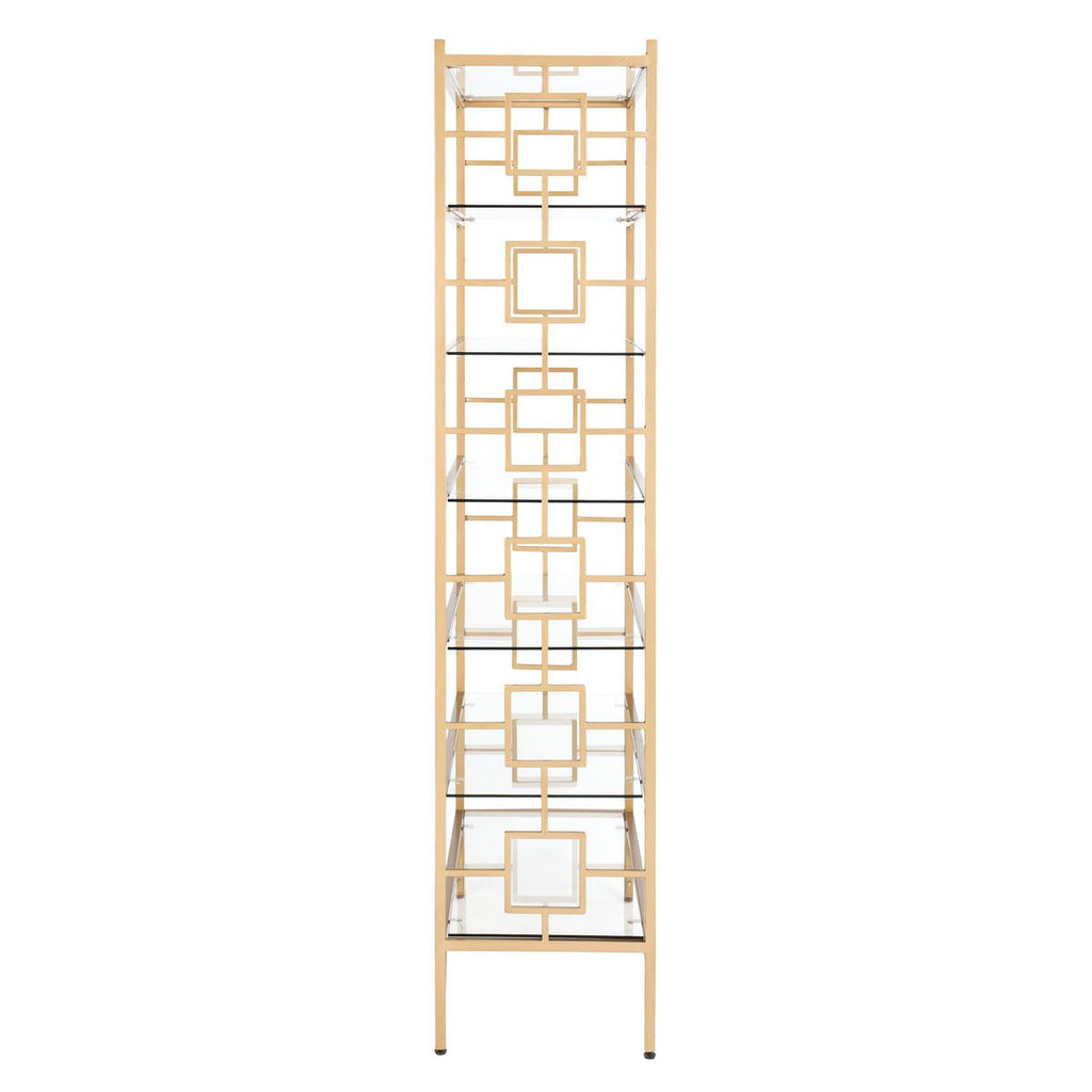 A gilded tower that displays all of life’s treasures, this contemporary 7-tier étagère is a classic. Designed with a bold quatrefoil pattern and clear shelves on each tier, its deluxe gold finish radiates good taste. Ideal for the living room or office.